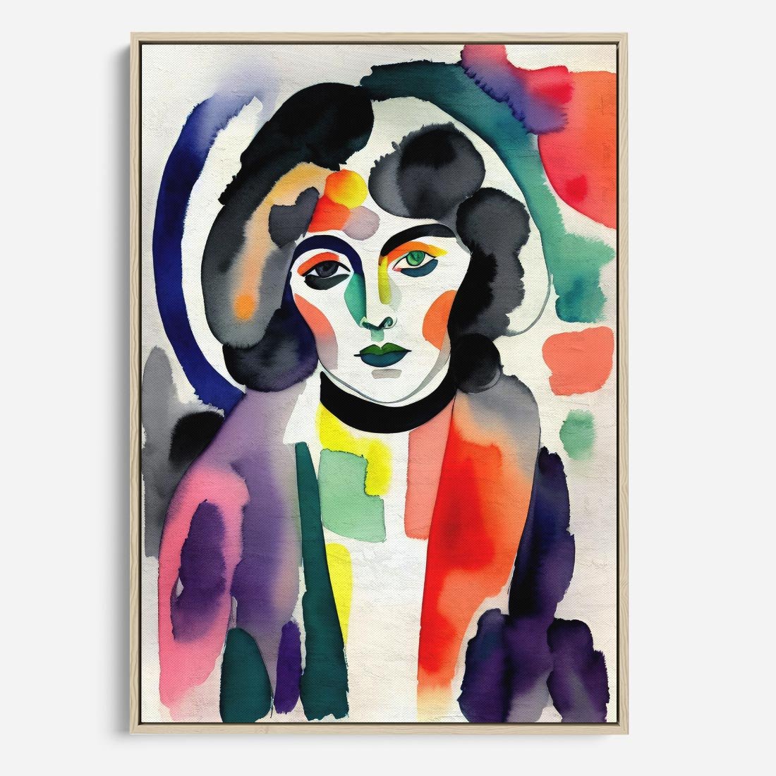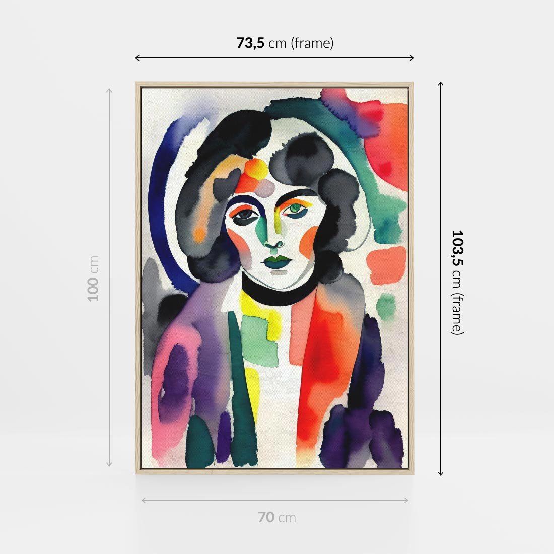 Obraz w ramie 70x100 - Subtelne Akwarelowe Ulotności - abstrakcyjny akwarelowy portret kobiety, rozmyte farby - rama drewno