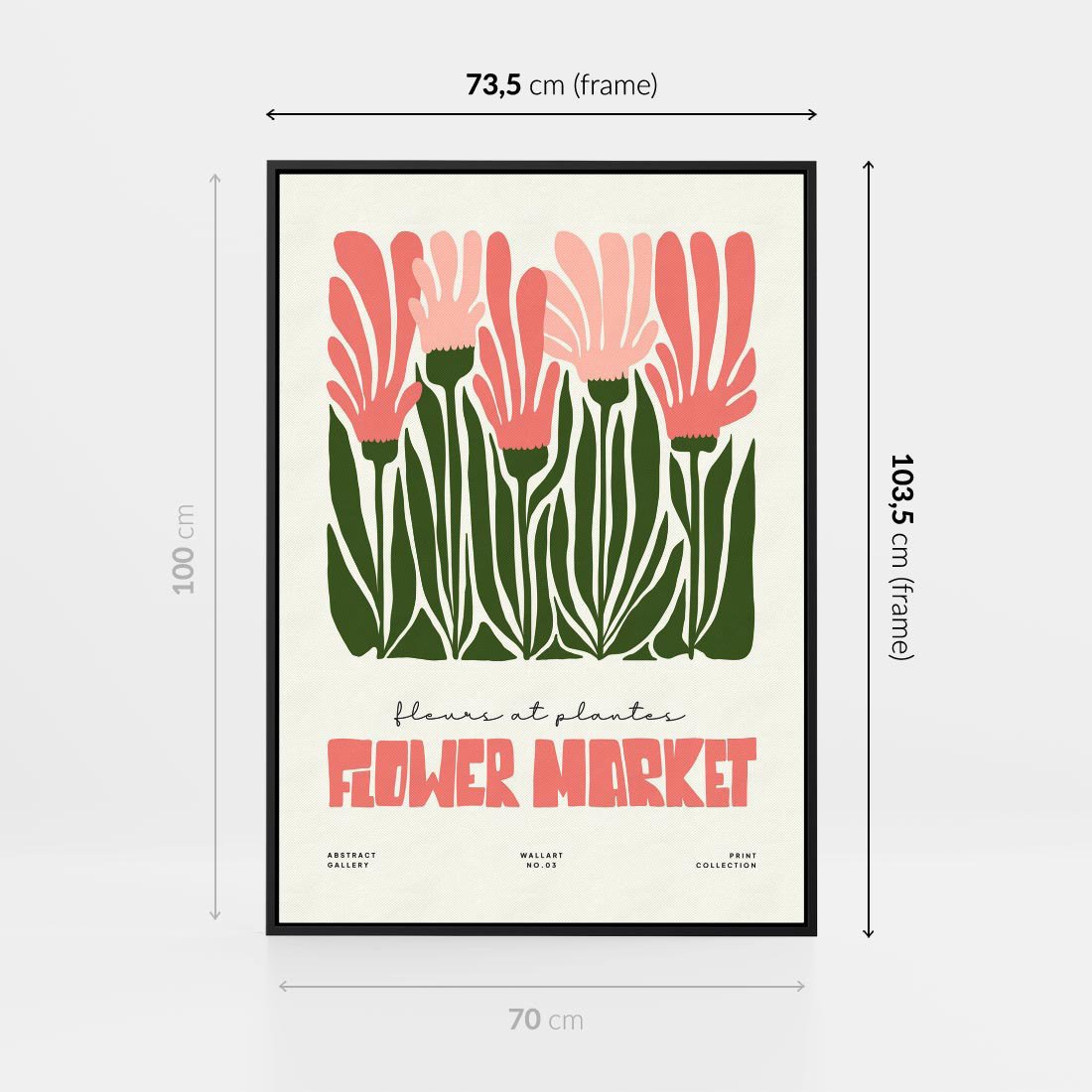 Ta nowoczesna grafika przedstawia kompozycję różowych kwiatów w stylu minimalistycznym. Zestawienie kwiatów z nowoczesną typografią tworzy dynamiczną i estetyczną całość. To obraz, który przynosi do wnętrza subtelne akcenty natury w nowoczesnym duchu, inspirując jednocześnie pięknem i harmonią.