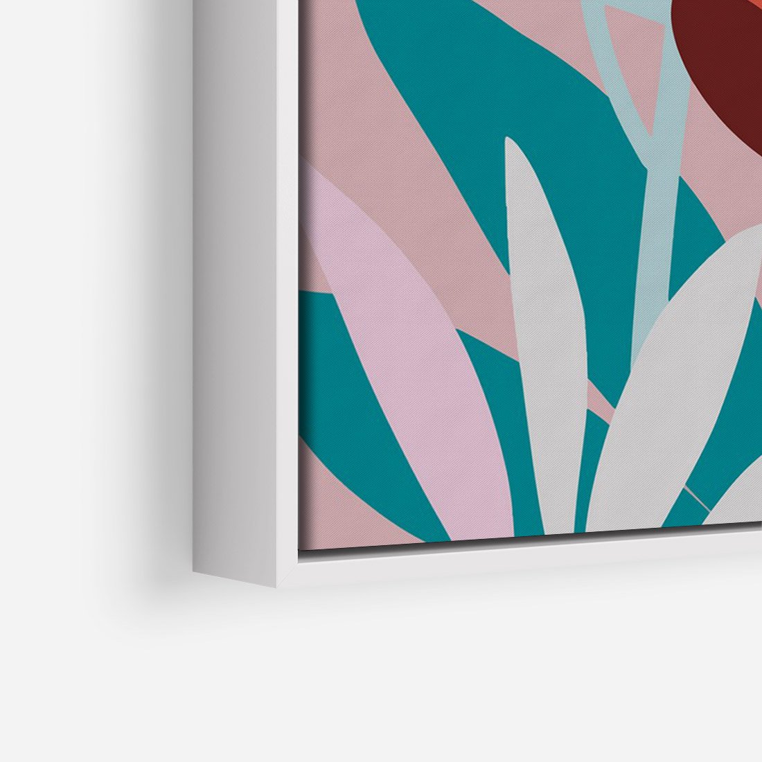 Abstrakcyjna kompozycja kwiatowych form zachwyca zgaszonym kolorem, tworząc subtelną i nowoczesną wizję natury. Ta sztuka doskonale łączy elementy kwiatów w abstrakcyjne wzory, emanując harmonią i tajemniczą głębią.