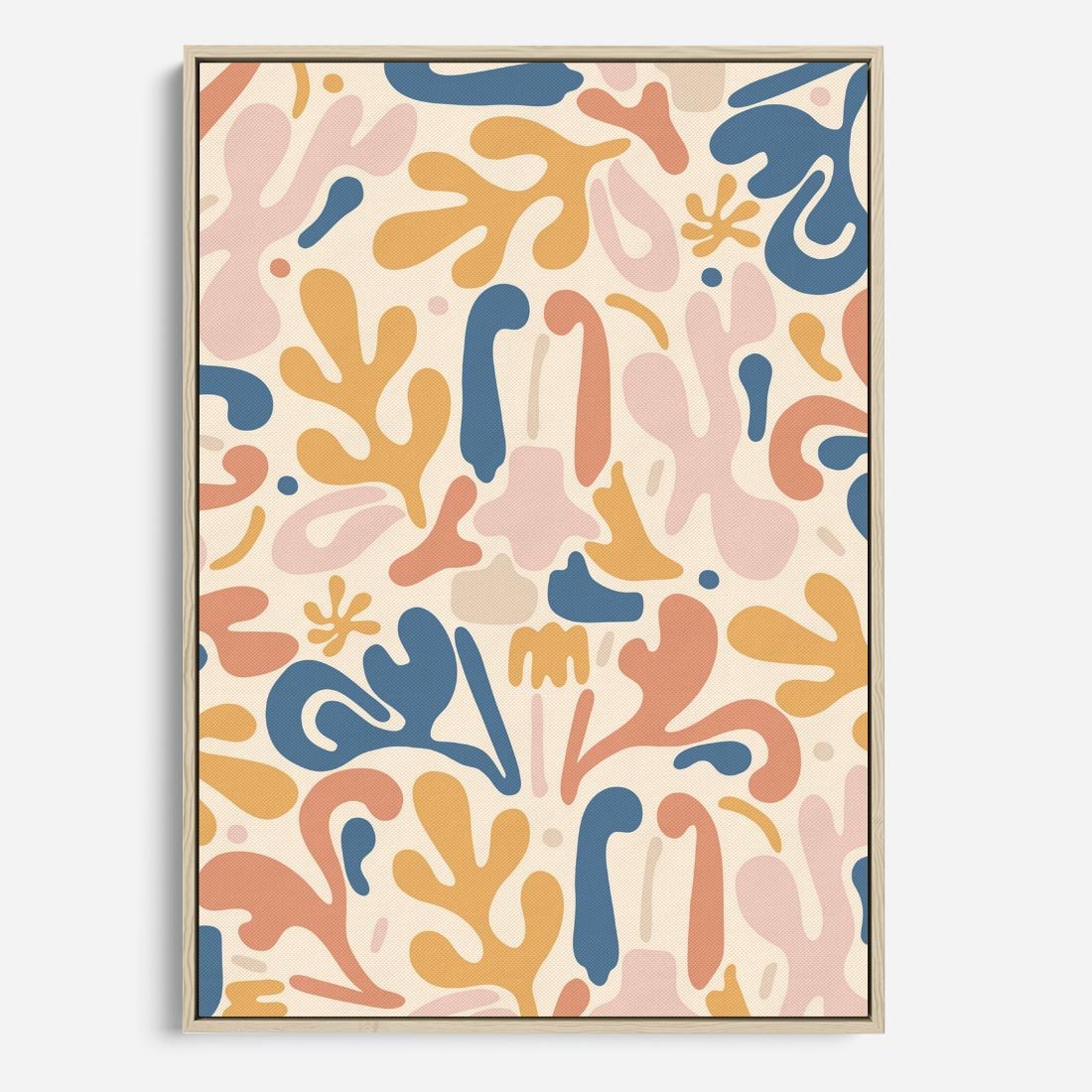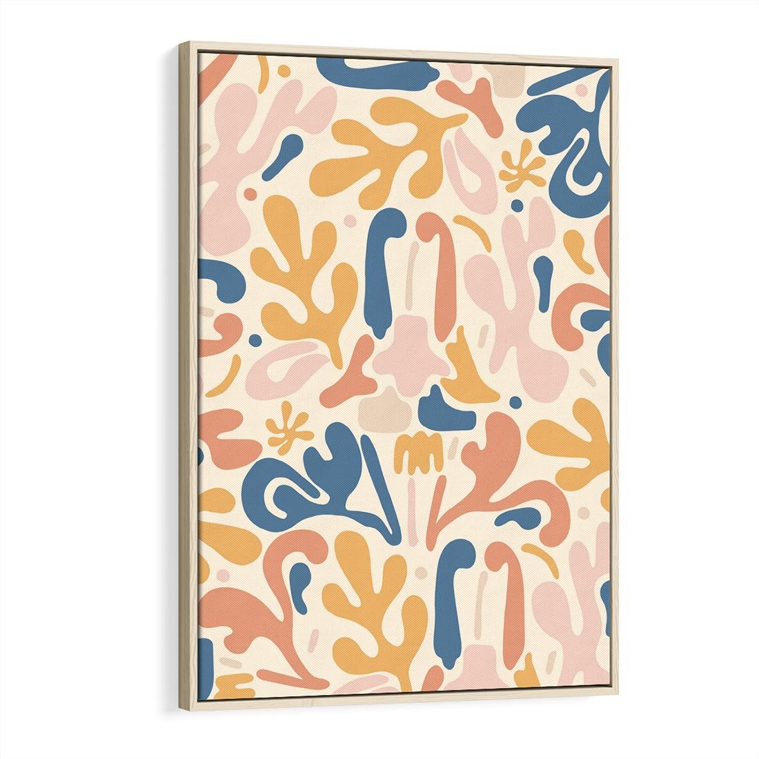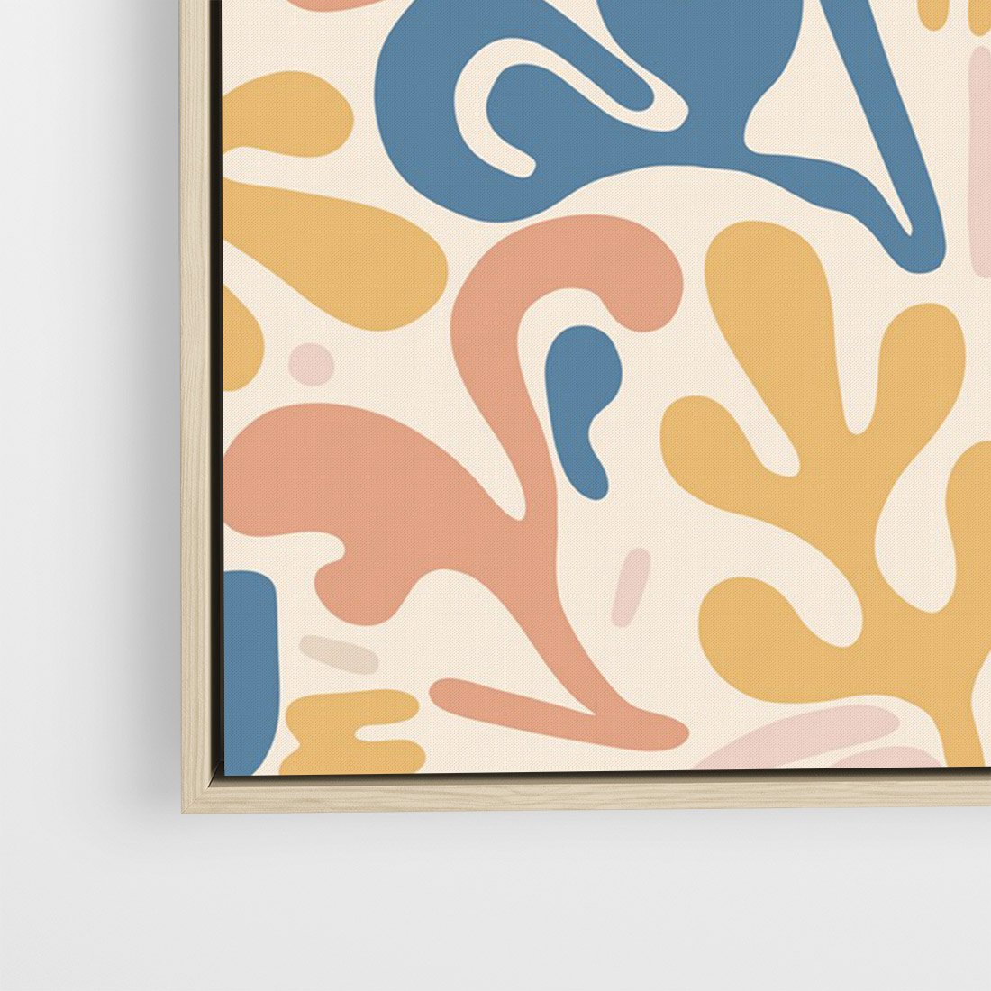 Obraz w ramie 70x100 - Symfonia Radosnych Barw - abstrakcyjne pastelowe formy, nowoczesna grafika w stylu boho - rama drewno