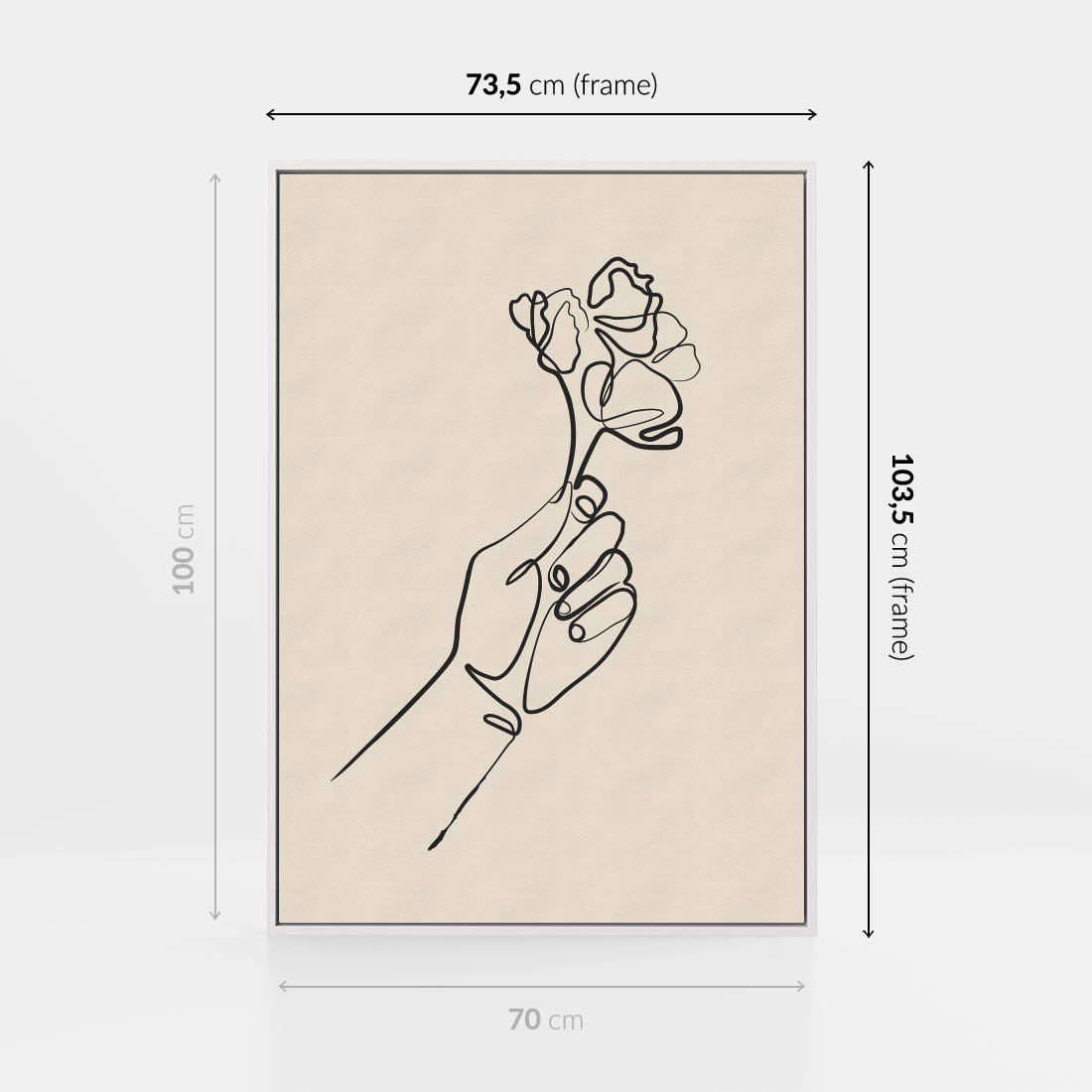 Obraz w ramie 70x100 - Szkic Kwiatu - kwiat w dłoni, szkic - rama biała