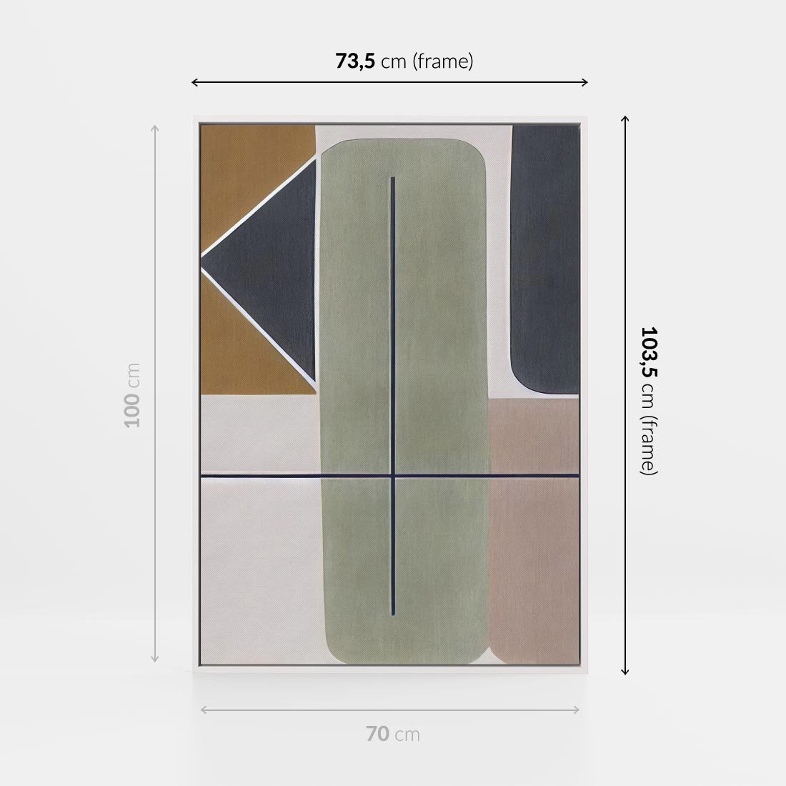Nasz obraz to fascynująca sztuka abstrakcji z geometrycznymi kształtami, przecinającymi się liniami i kolorowymi prostokątami. Nowoczesne kompozycje w jasnej zieleni jak mchy przywołują harmonię natury. Inspirująca sztuka, której linie kreski zapraszają do odkrywania nieznanego. Wyjątkowy dodatek do każdego wnętrza, nadający mu nowoczesny i artystyczny charakter.
