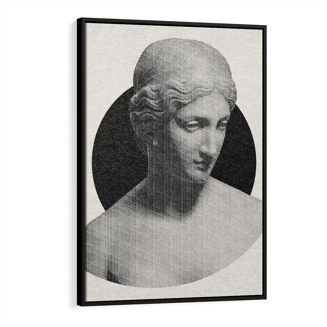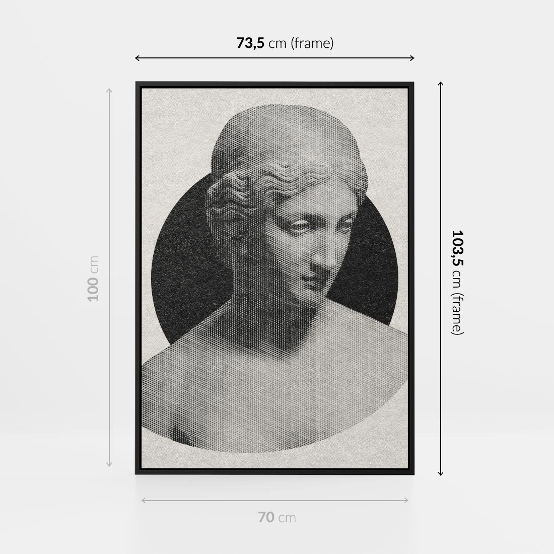 Wybierz ten graficzny kolaż, aby cieszyć się antyczną rzeźbą kobiety w nowoczesnym wydaniu. Czarno-biały obraz dodaje elegancji, a sztuka na płótnie wciąż emanuje magią dawnych czasów.