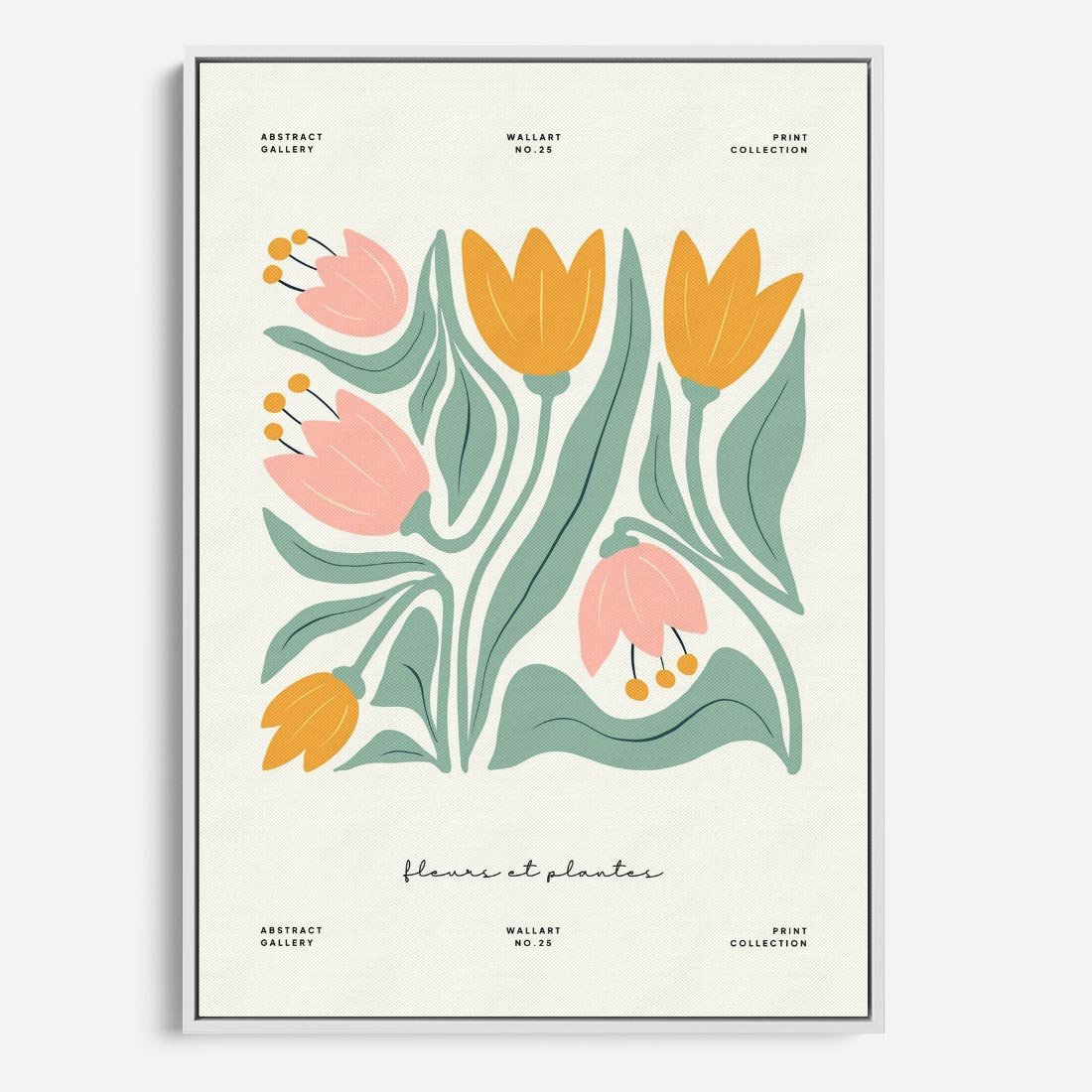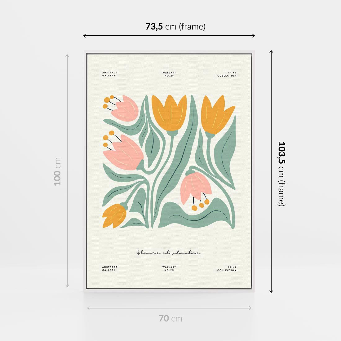 Ten plakat w nowoczesnej abstrakcji przywołuje piękno kwiatów w pastelowych tonach, w harmonii z delikatną typografią. Kompozycja tworzy subtelne i spokojne wrażenie, zachęcając do odkrywania piękna natury.