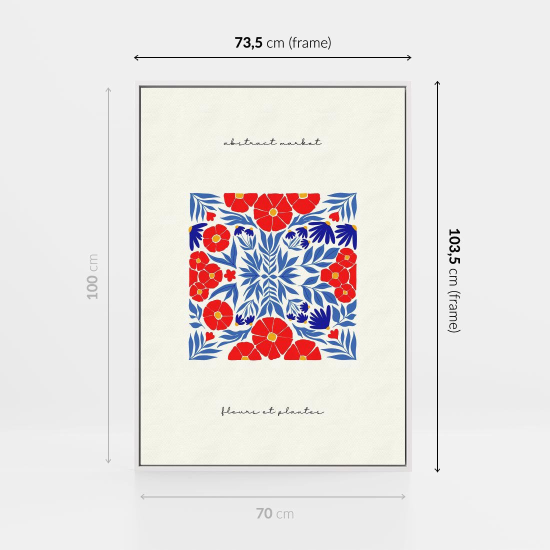 Obraz w ramie 70x100 - Tajemnicza Droga - nowoczesna kwiatowa kompozycja, czerwony i niebieski - rama biała