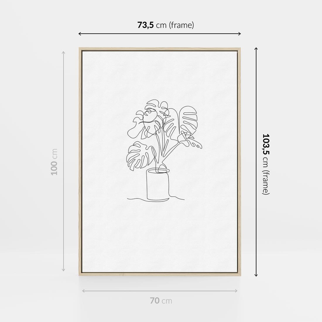 Obraz w ramie 70x100 - Tajemnicza Harmonia - sztuka one line, monstera - rama drewno