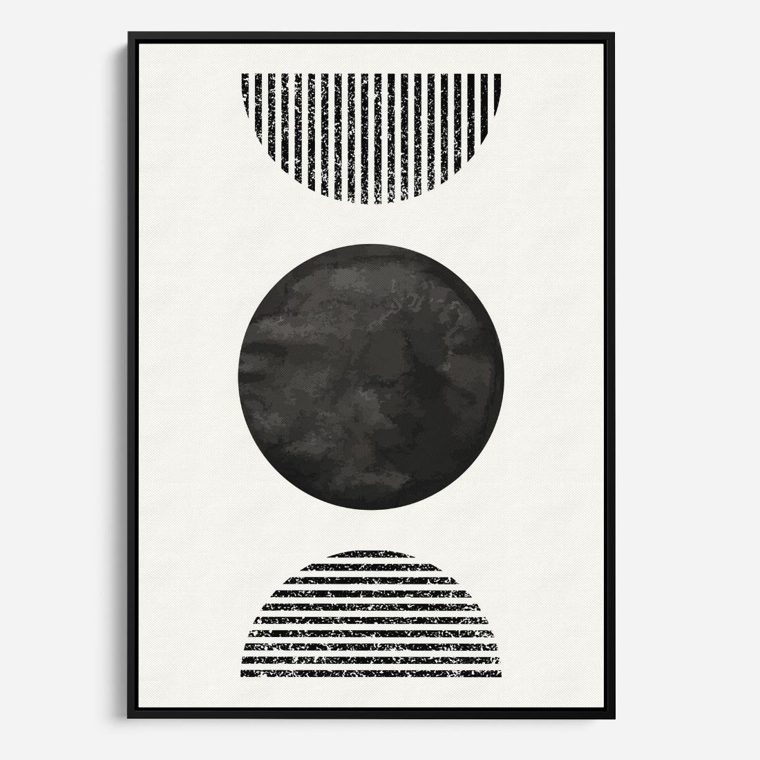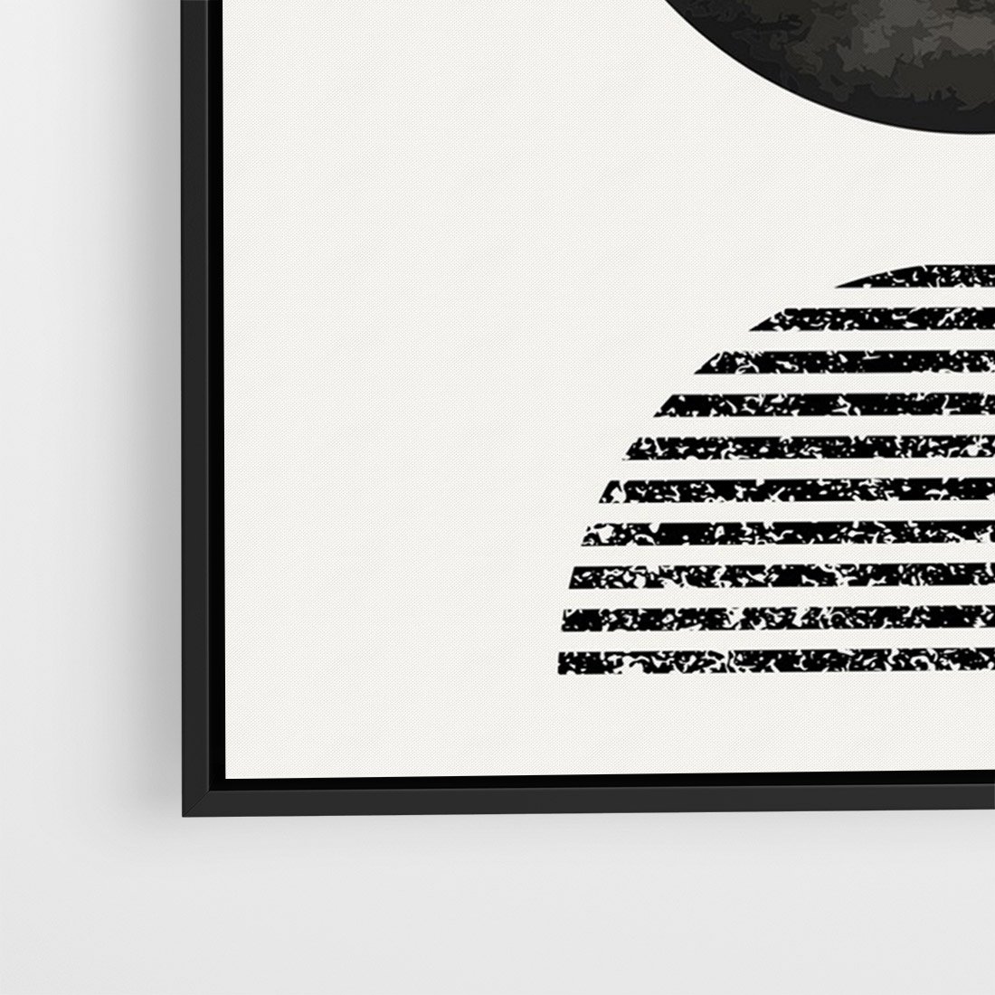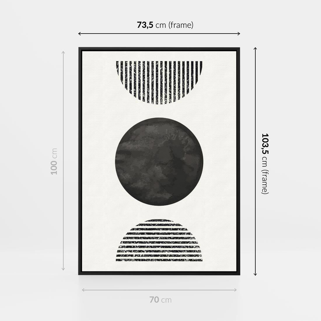 Zanurz się w świat abstrakcyjnej sztuki z tym minimalistycznym obrazem. Czarne i białe formy układają się w harmonijną geometrię, tworząc nowoczesną kompozycję idealną do każdego wnętrza.