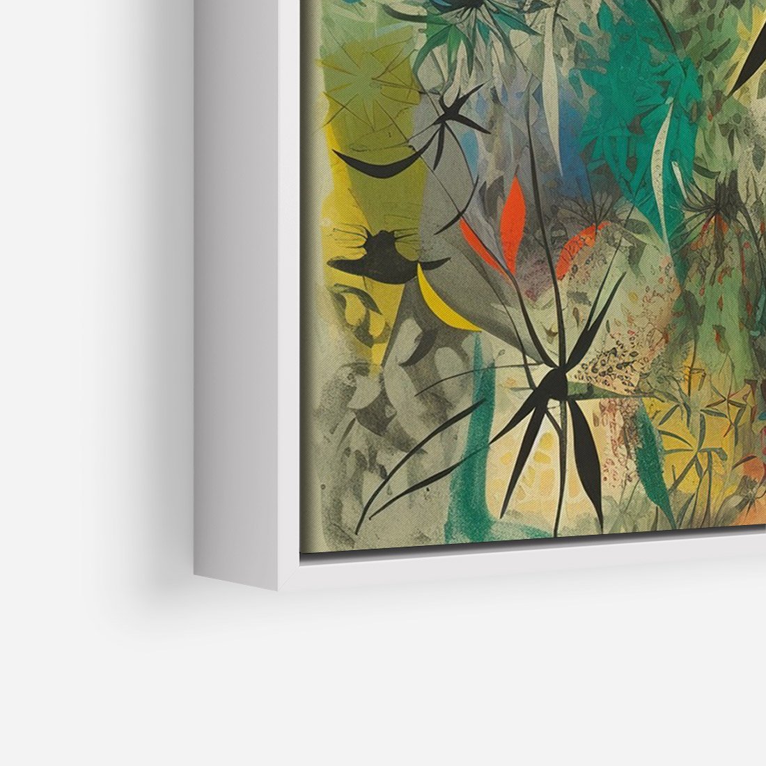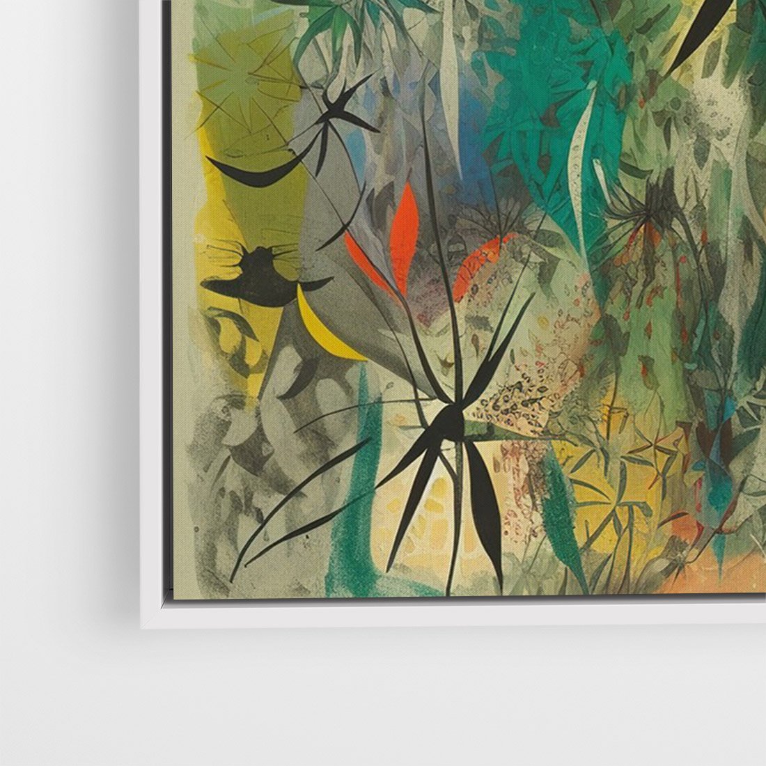 Ten abstrakcyjny obraz to prawdziwa eksplozja kolorów i małych, zawiłych elementów. Ich kształty tworzą harmonijną całość, wzbogaconą o roślinne motywy. Ciekawa i intrygująca kompozycja przyciąga uwagę i inspiruje do refleksji.