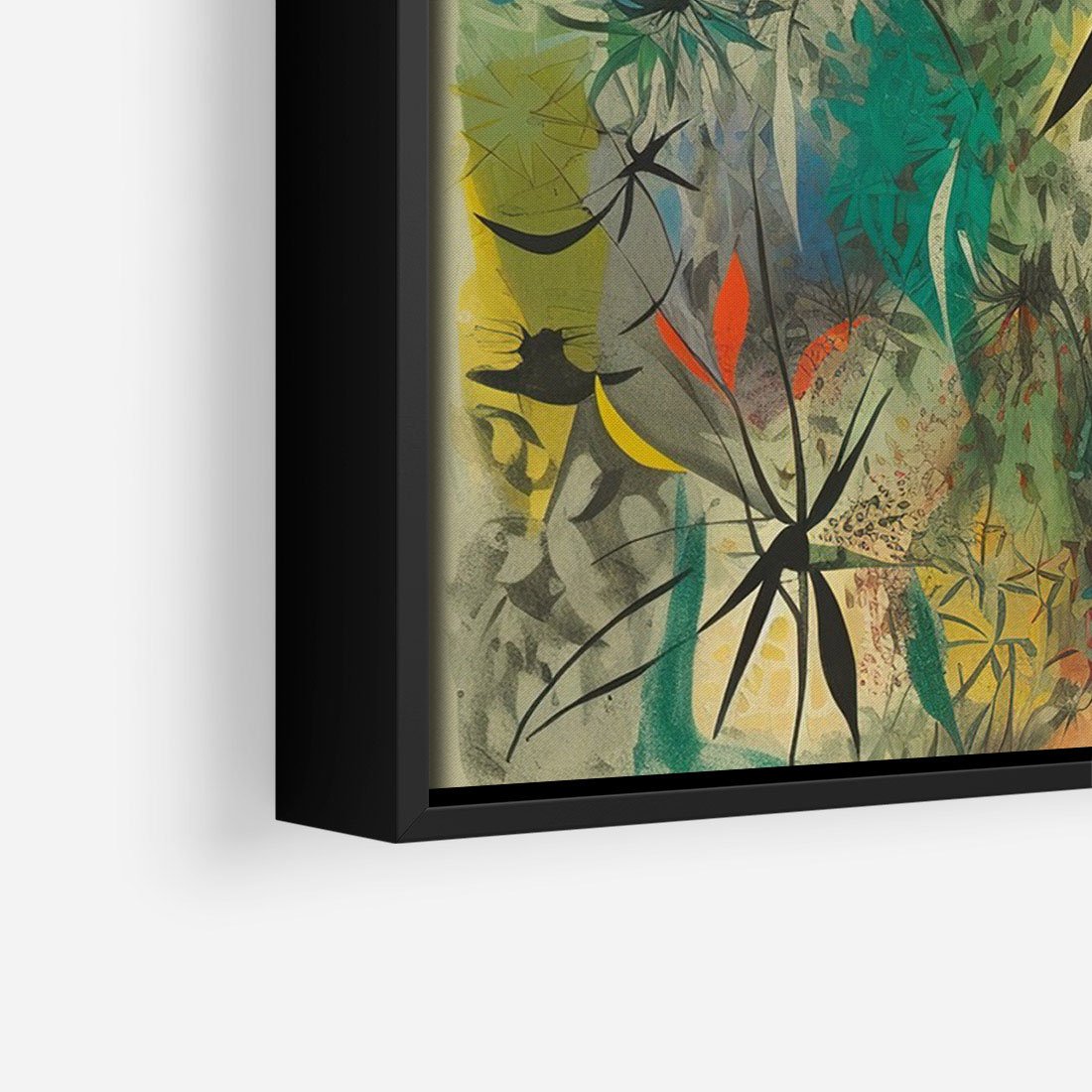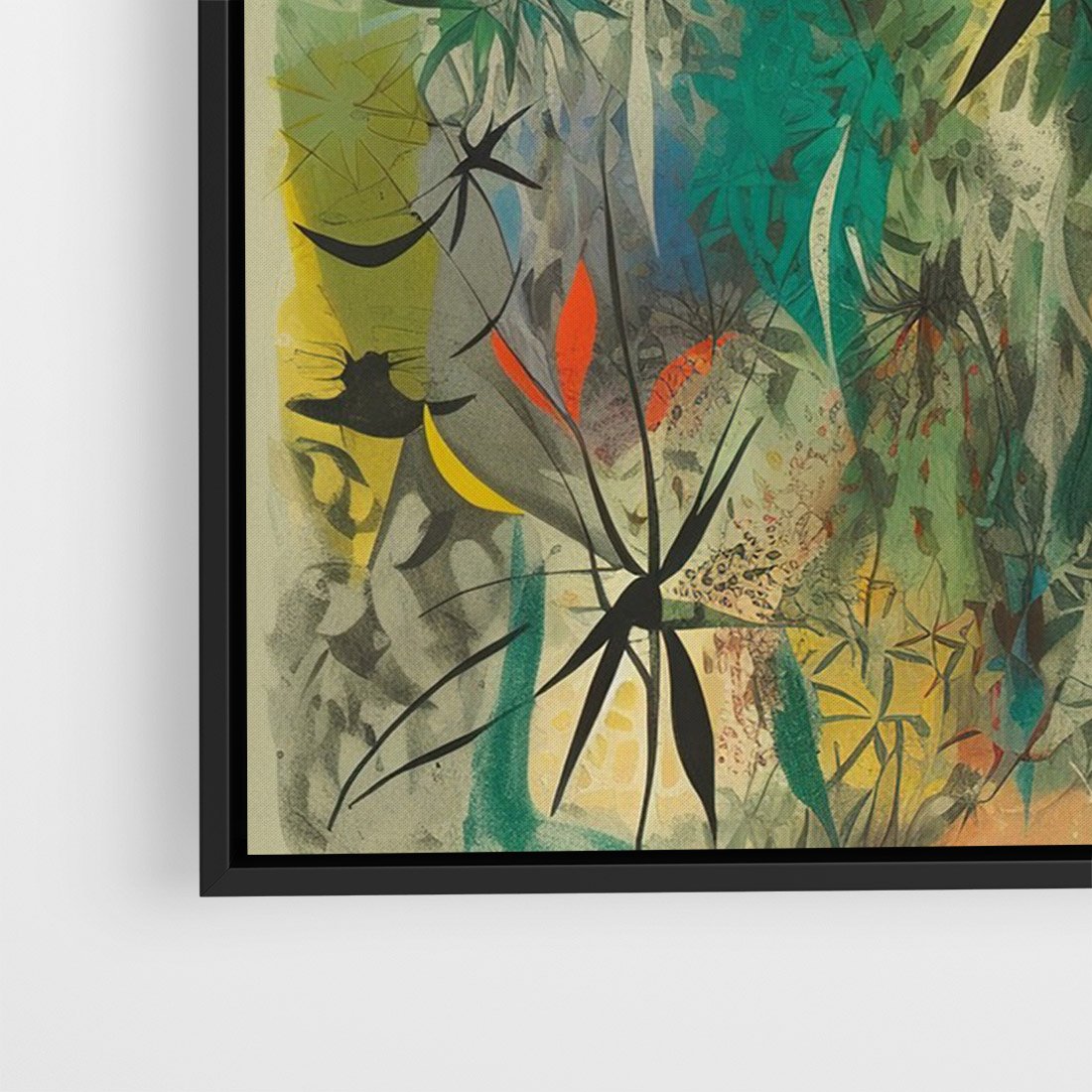 Ten abstrakcyjny obraz to prawdziwa eksplozja kolorów i małych, zawiłych elementów. Ich kształty tworzą harmonijną całość, wzbogaconą o roślinne motywy. Ciekawa i intrygująca kompozycja przyciąga uwagę i inspiruje do refleksji.