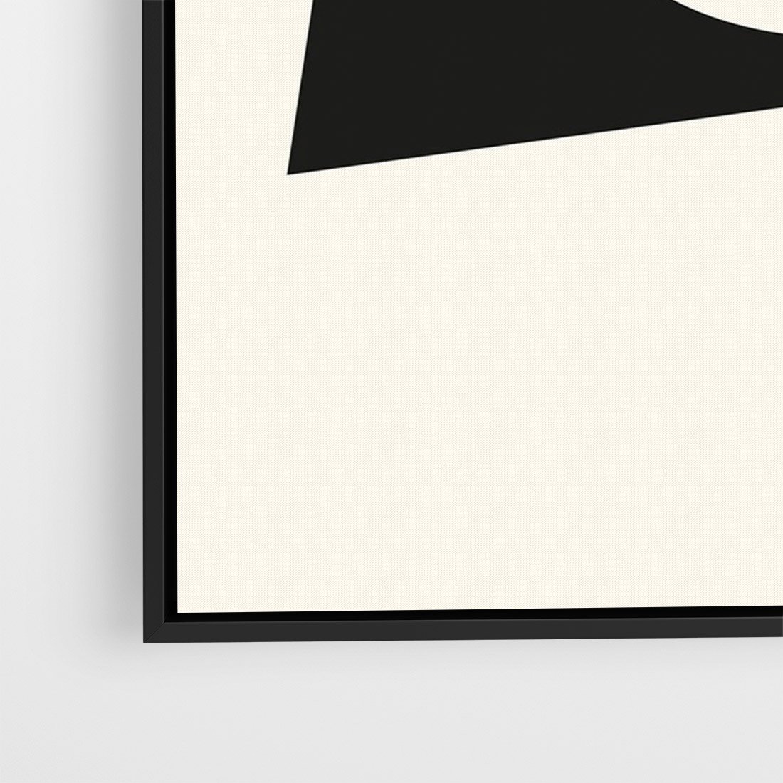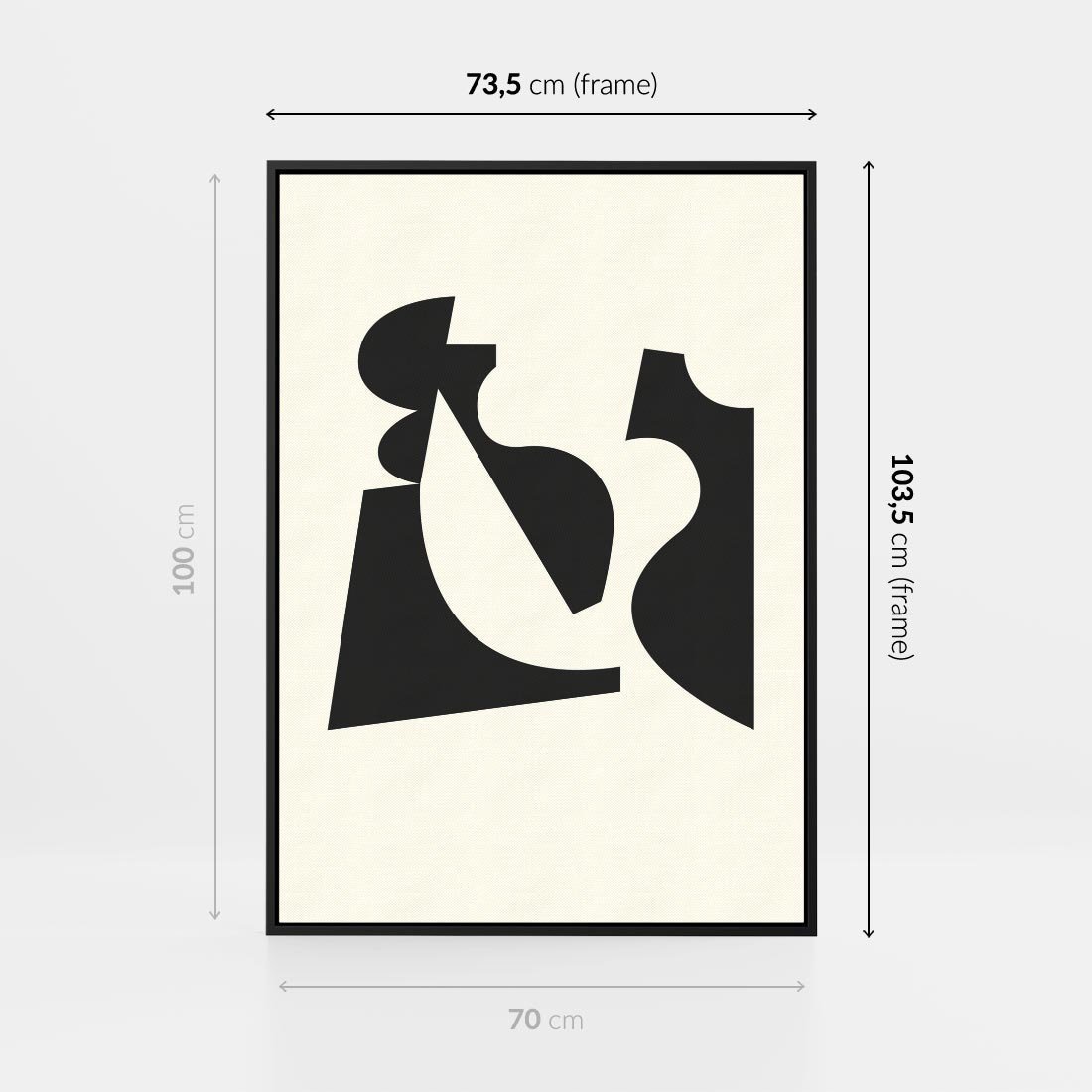 Ten plakat prezentuje abstrakcyjne kształty oparte na geometrii w minimalistycznym stylu czarno-białym. Sztuka ta eksploruje relacje między formami i przestrzenią, tworząc równowagę i harmonię, która pobudza wyobraźnię i wprowadza spokojny, ale zarazem dynamiczny element do Twojej przestrzeni.