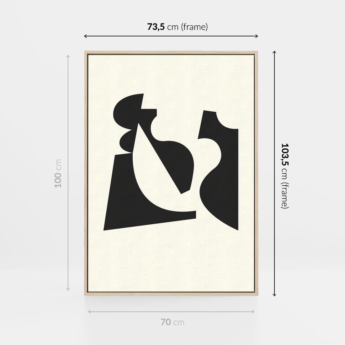 Ten plakat prezentuje abstrakcyjne kształty oparte na geometrii w minimalistycznym stylu czarno-białym. Sztuka ta eksploruje relacje między formami i przestrzenią, tworząc równowagę i harmonię, która pobudza wyobraźnię i wprowadza spokojny, ale zarazem dynamiczny element do Twojej przestrzeni.