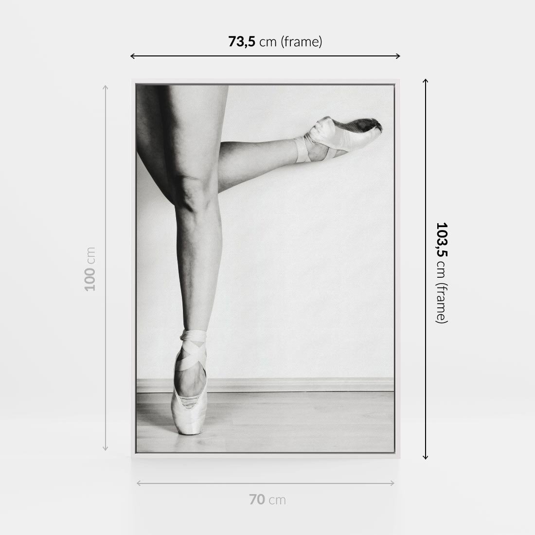 Obraz w ramie 70x100 - Tańcząca Delikatność - artystyczne zdjęcie, odcienie szarości - rama biała