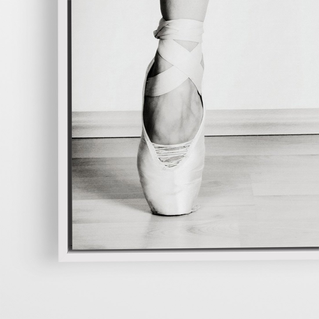 To artystyczne zdjęcie w odcieniach szarości przedstawia ujęcie stóp baletnicy w chwili, gdy ta tańczy na pointach. Zbliżenie na te delikatne i wyraziste detale tworzy wyjątkową atmosferę. To doskonały wybór dla miłośników sztuki i baletu, którzy chcą wprowadzić do swojej przestrzeni subtelność i elegancję. Zdjęcie oddaje piękno i wyrafinowanie chwili tańca.