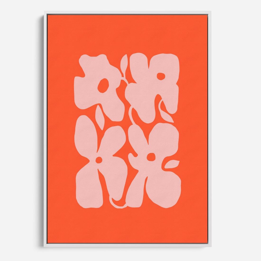Obraz w ramie 70x100 - Taniec Abstrakcji - kwiaty, energetyczne pomarańczowe tłó - rama biała