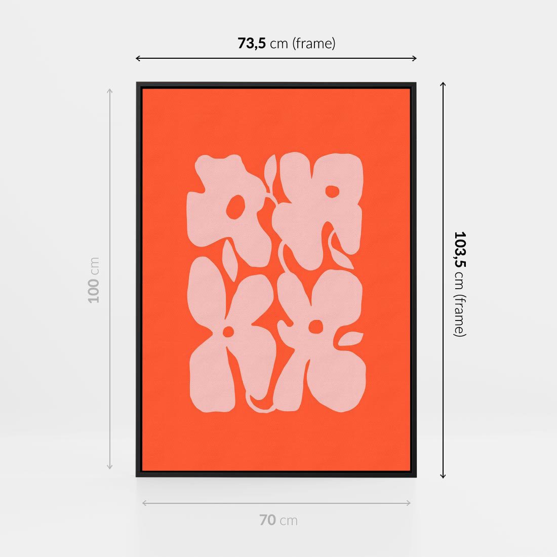 Ten plakat to wyjątkowa abstrakcyjna kompozycja kwiatów na energetycznym pomarańczowym tle. Sztuka ta przynosi dynamiczną i radosną atmosferę do Twojej przestrzeni, łącząc piękno kwiatów z wyrazistym kolorem. Plakat jest wyjątkowym sposobem na dodanie witalności i koloru do wnętrza oraz subtelny akcent abstrakcyjnej sztuki.