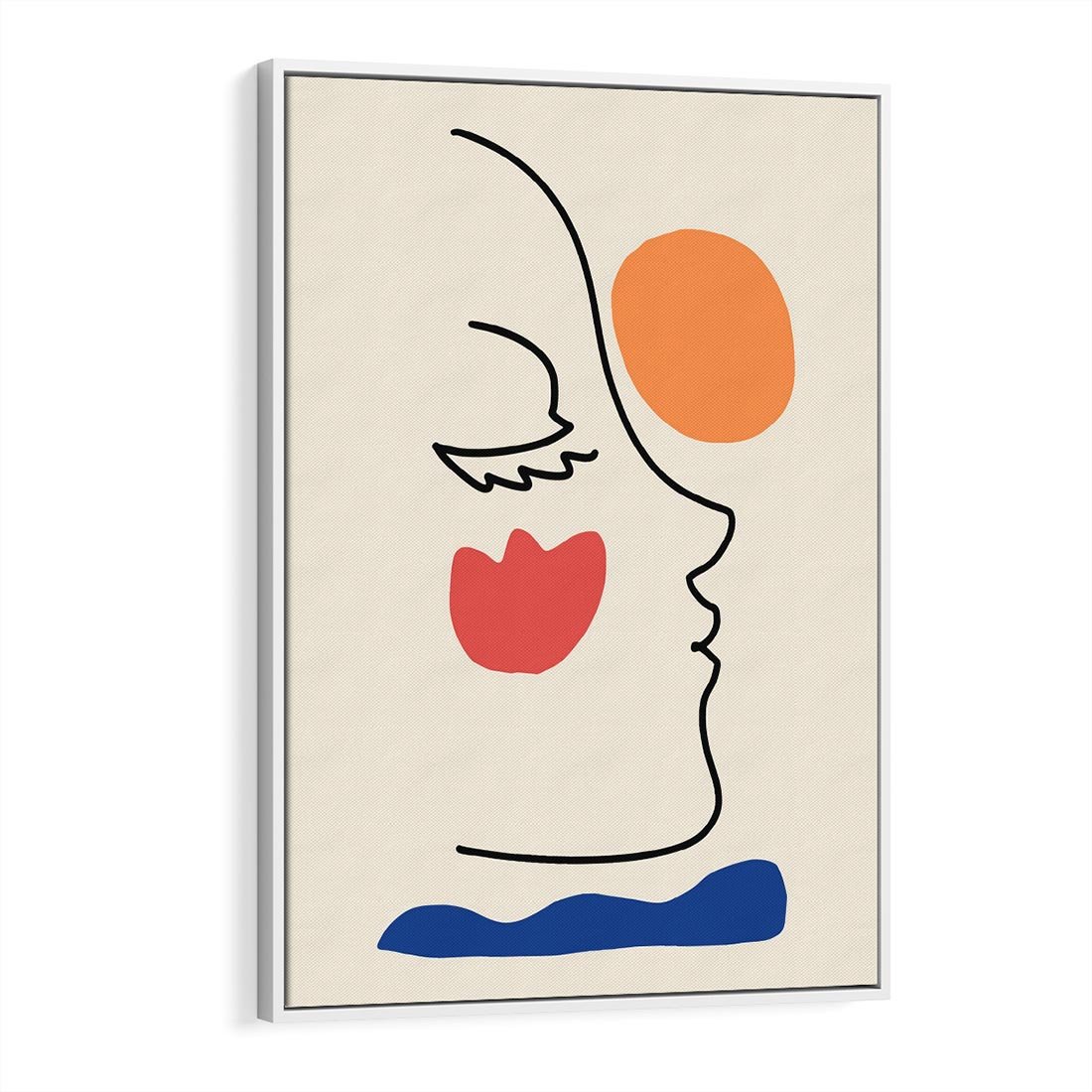 Obraz w ramie 70x100 - Taniec Przenikających Plam - abstrakcyjny obraz, przypomina twarz - rama biała