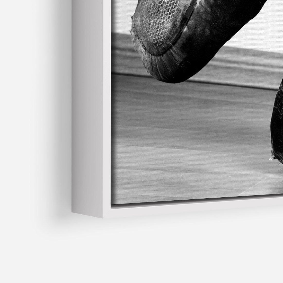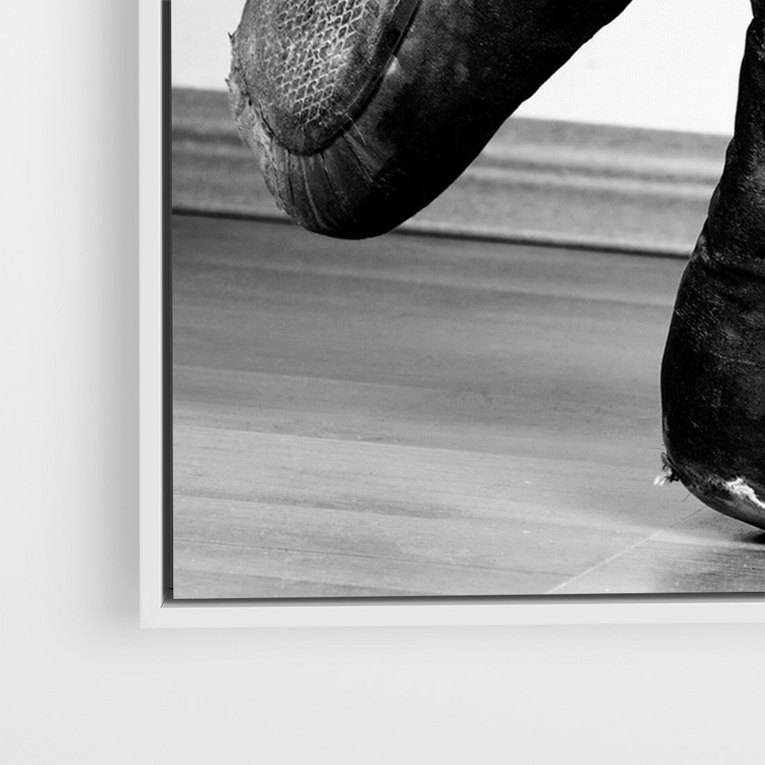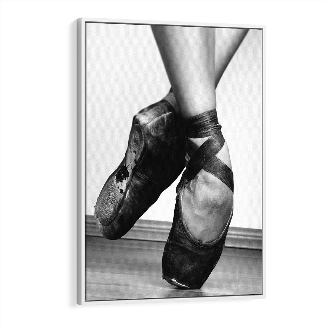 To artystyczne zdjęcie w odcieniach szarości ukazuje subtelne i delikatne piękno stóp baletnicy ubranych w pointy. Zbliżenie na te wyjątkowe momenty tańca w połączeniu z monochromatyczną paletą kolorów tworzy wyjątkową atmosferę. To doskonały wybór dla miłośników sztuki i baletu, którzy chcą wnieść elegancję i wyrafinowanie do swojej przestrzeni.