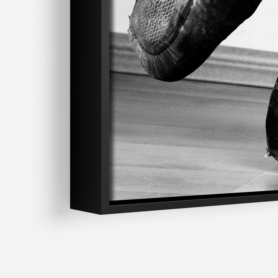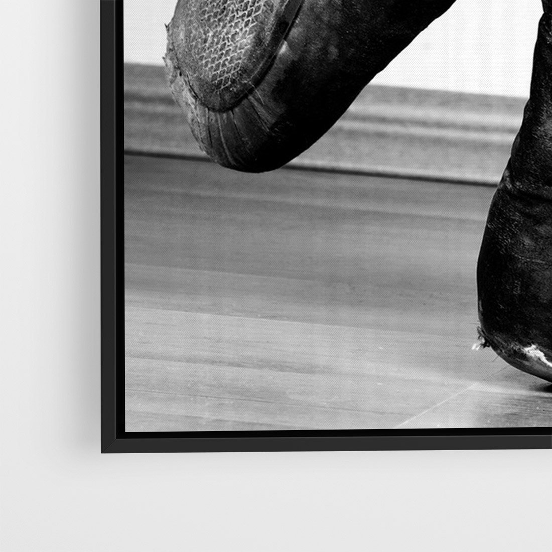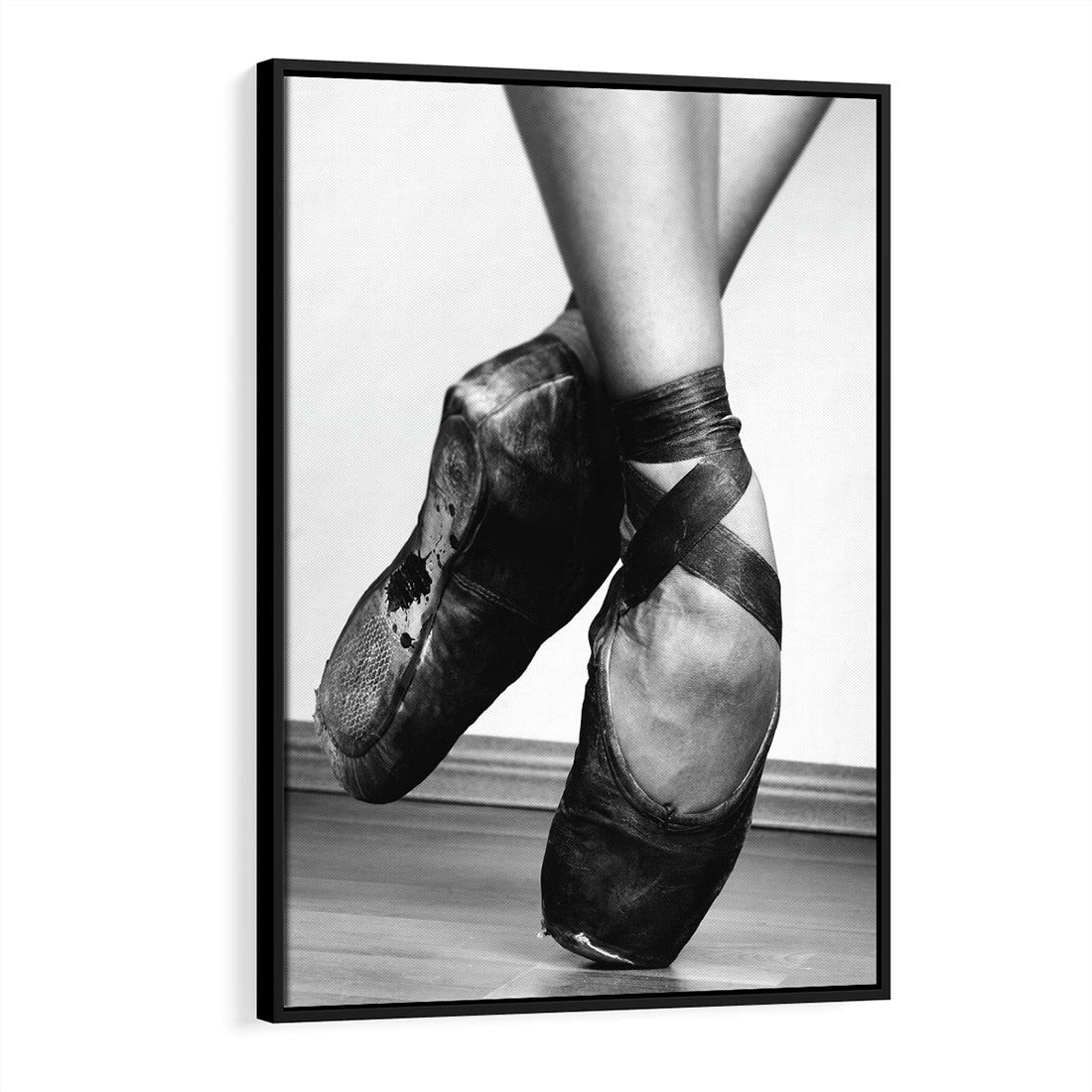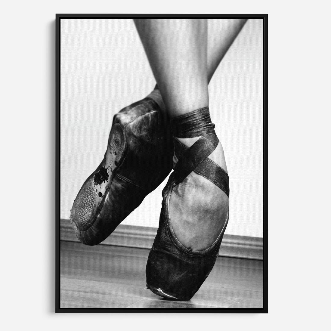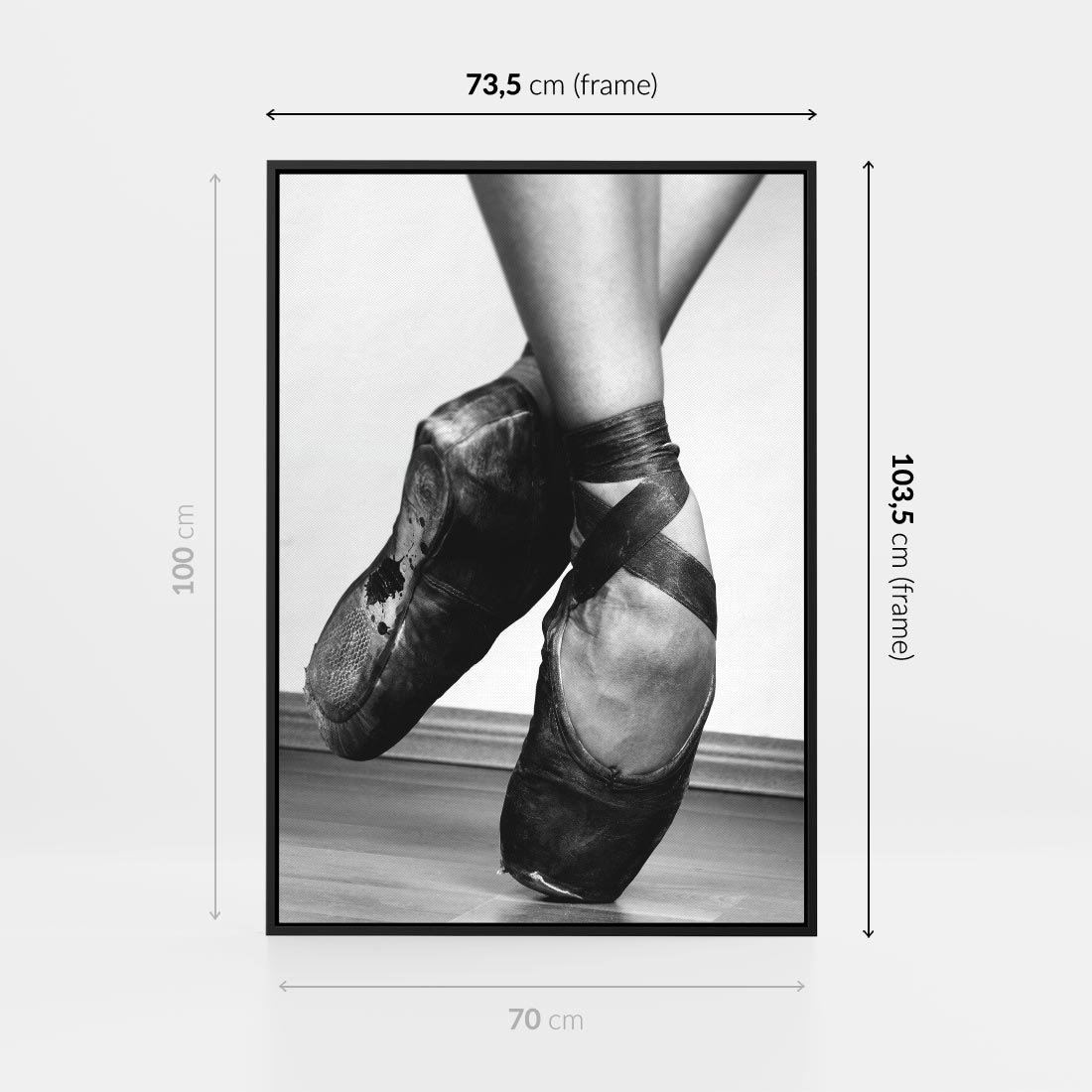 To artystyczne zdjęcie w odcieniach szarości ukazuje subtelne i delikatne piękno stóp baletnicy ubranych w pointy. Zbliżenie na te wyjątkowe momenty tańca w połączeniu z monochromatyczną paletą kolorów tworzy wyjątkową atmosferę. To doskonały wybór dla miłośników sztuki i baletu, którzy chcą wnieść elegancję i wyrafinowanie do swojej przestrzeni.