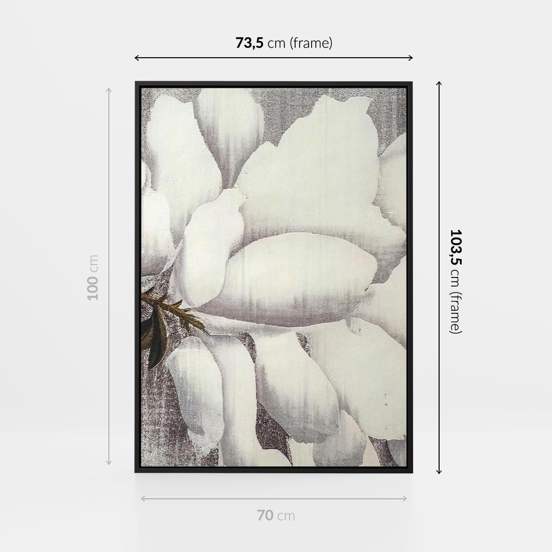 Obraz w ramie 70x100 - Tekstura Kwiatu - białe kwiaty, duży kwiat - rama czarna