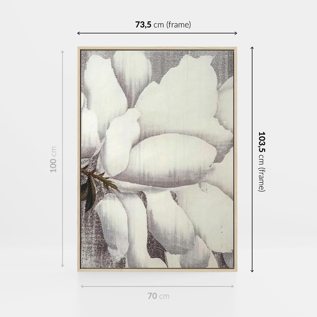 Obraz w ramie 70x100 - Tekstura Kwiatu - białe kwiaty, duży kwiat - rama drewno
