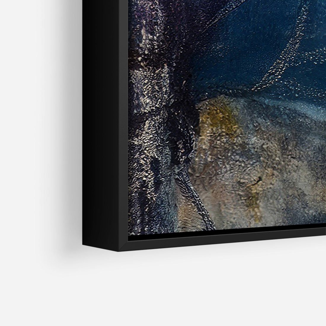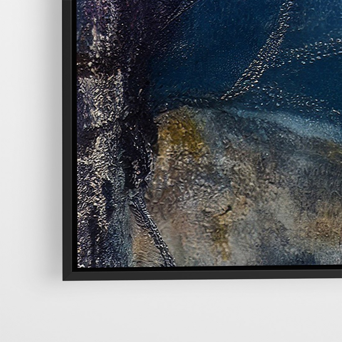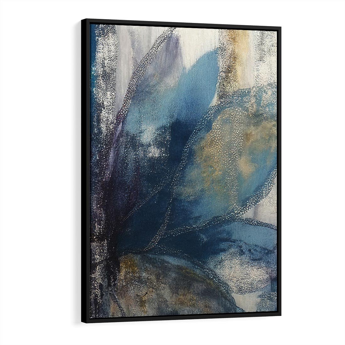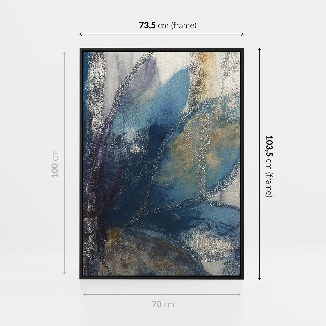 Obraz w ramie 70x100 - Tekstura Kwiatu - olejny obraz, niebieski kwiat - rama czarna