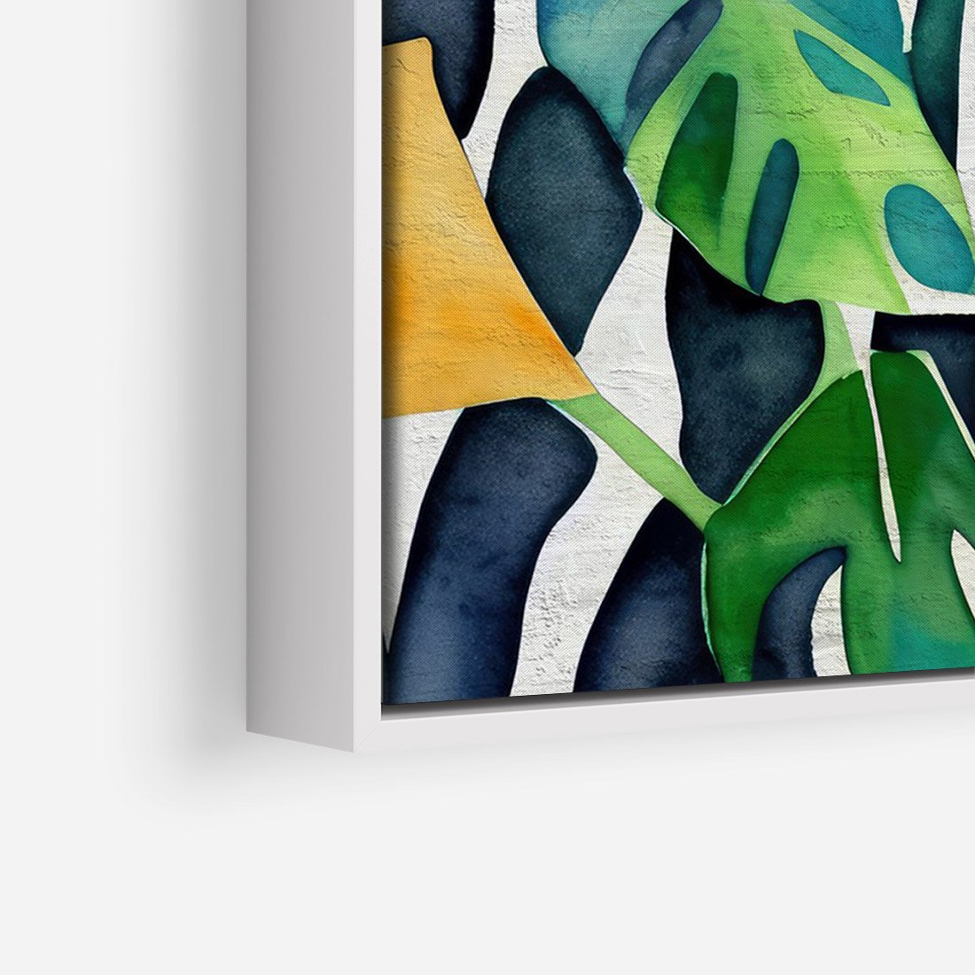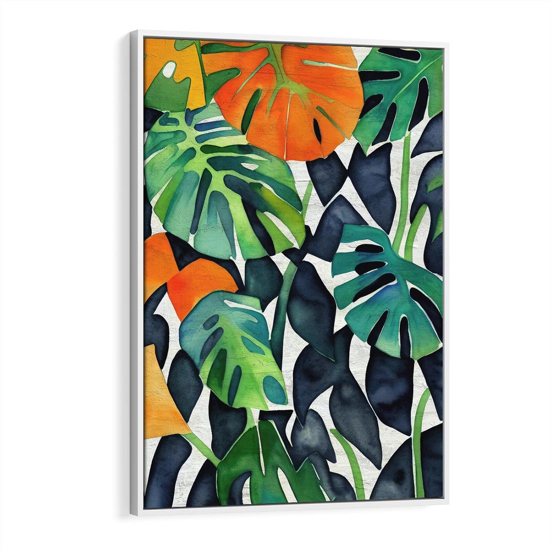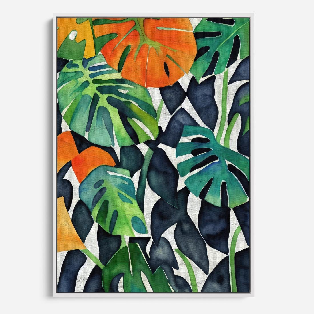 Obraz w ramie 70x100 - Tropikalne Pragnienia - akwarela, liście tropikalne - rama biała