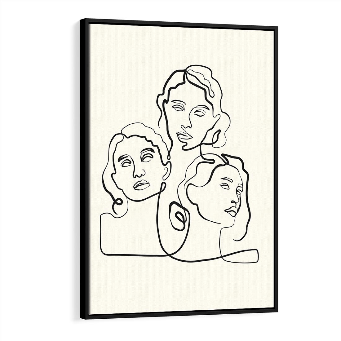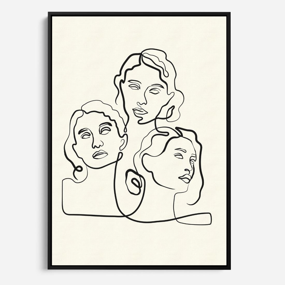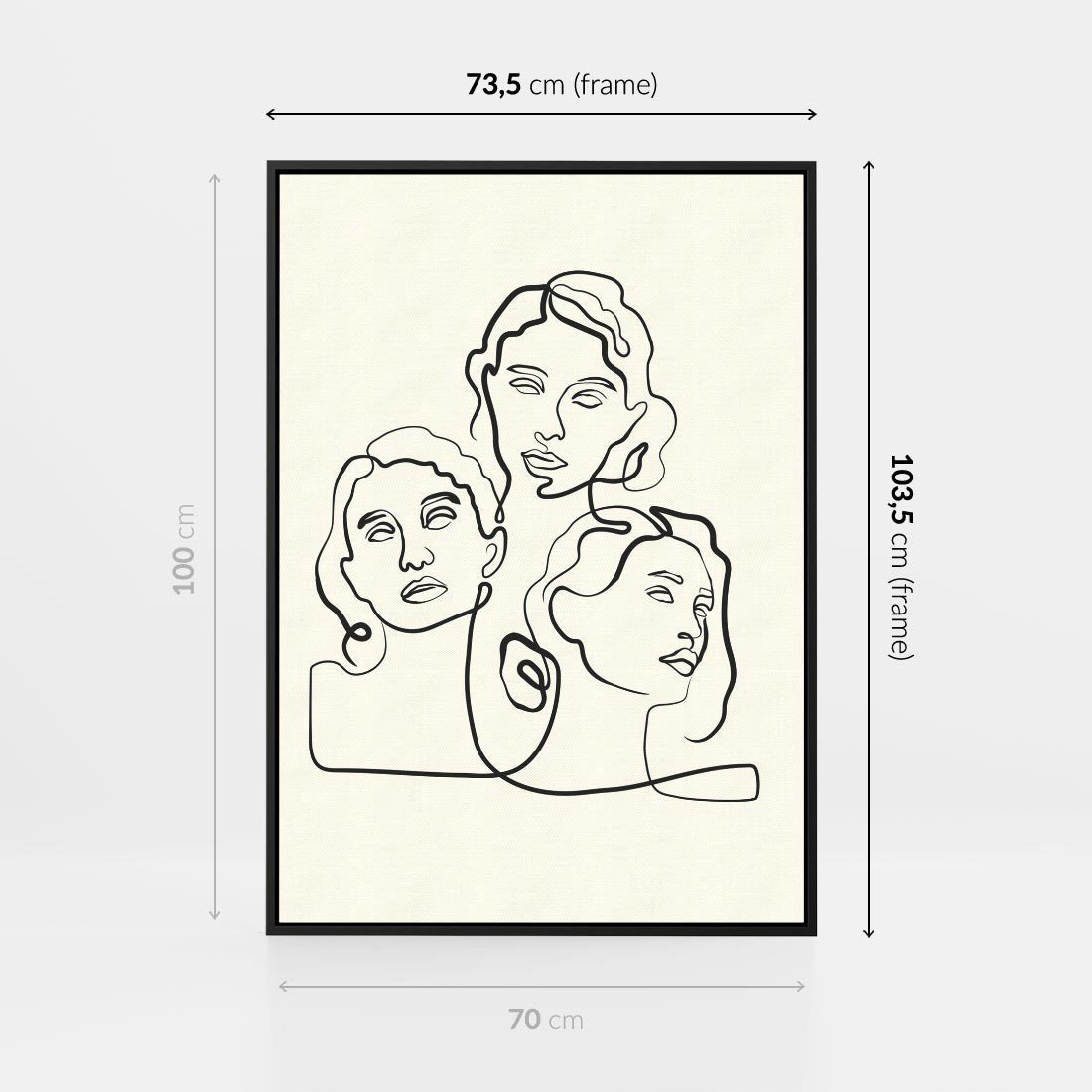 Ten plakat w stylu one line ukazuje trzy kobiety w antycznym posągu. Przez zastosowanie jednej linii, sztuka ta oddaje esencję ich postaci i relacji, tworząc wyjątkowy obraz, który zachwyca swoją prostotą i wyrafinowaną abstrakcją, wprowadzając unikalny element do Twojej przestrzeni.