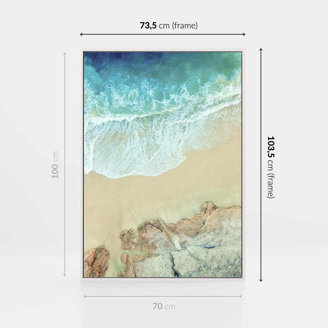 Odkryj urok nadmorskiej przygody dzięki temu fascynującemu obrazowi. Widok z lotu ptaka ukazuje turkusową wodę i błyszczącą plażę. To dzieło sztuki stworzone dla miłośników morskich krajobrazów i spokoju. Doskonały akcent dla tych, którzy pragną wprowadzić do swojego wnętrza powiew świeżego powietrza i uroku morskich pejzaży.