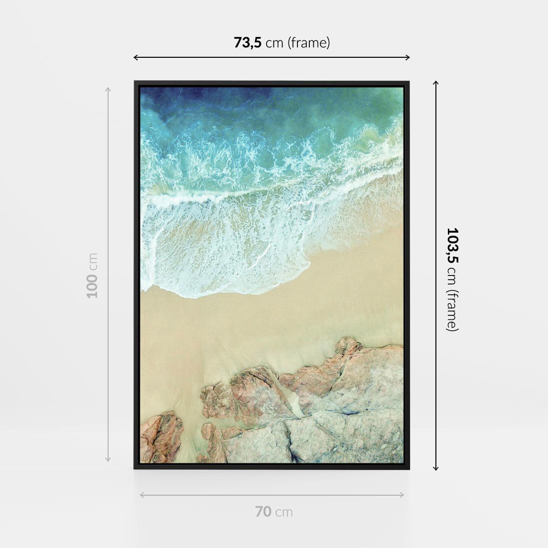 Odkryj urok nadmorskiej przygody dzięki temu fascynującemu obrazowi. Widok z lotu ptaka ukazuje turkusową wodę i błyszczącą plażę. To dzieło sztuki stworzone dla miłośników morskich krajobrazów i spokoju. Doskonały akcent dla tych, którzy pragną wprowadzić do swojego wnętrza powiew świeżego powietrza i uroku morskich pejzaży.