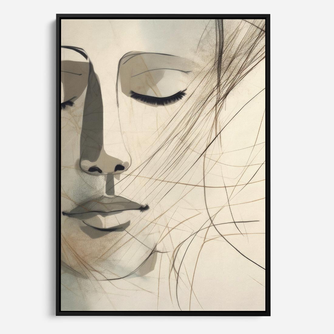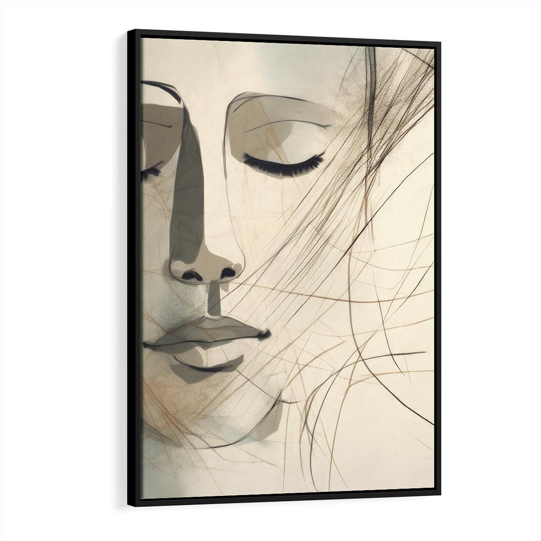 Ten obraz przedstawia twarz kobiety z zamkniętymi oczami wykonaną techniką akwareli. Szkic w neutralnych beżowych kolorach dodaje kompozycji delikatności i subtelnego piękna. Obraz emanuje spokojem i elegancją, przenosząc widza w refleksyjny nastrój. To artystyczne dzieło doskonale pasuje do nowoczesnych wnętrz, nadając im wyjątkowego charakteru.