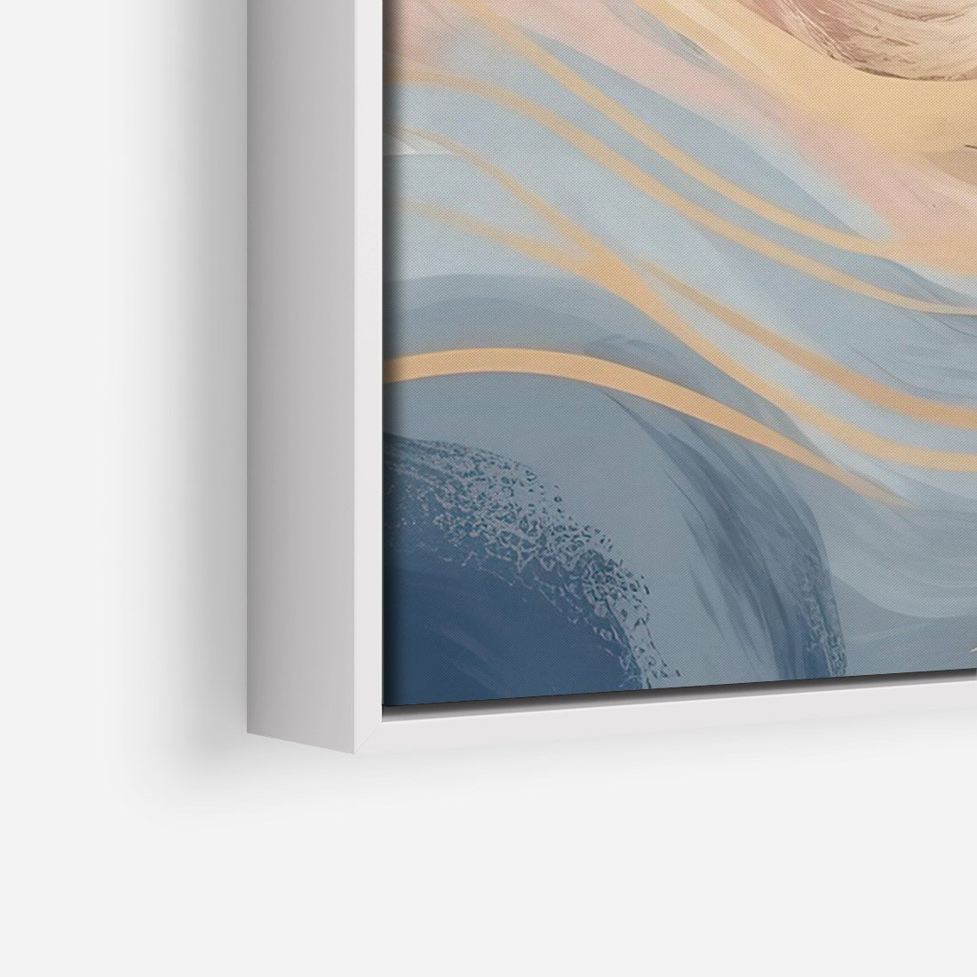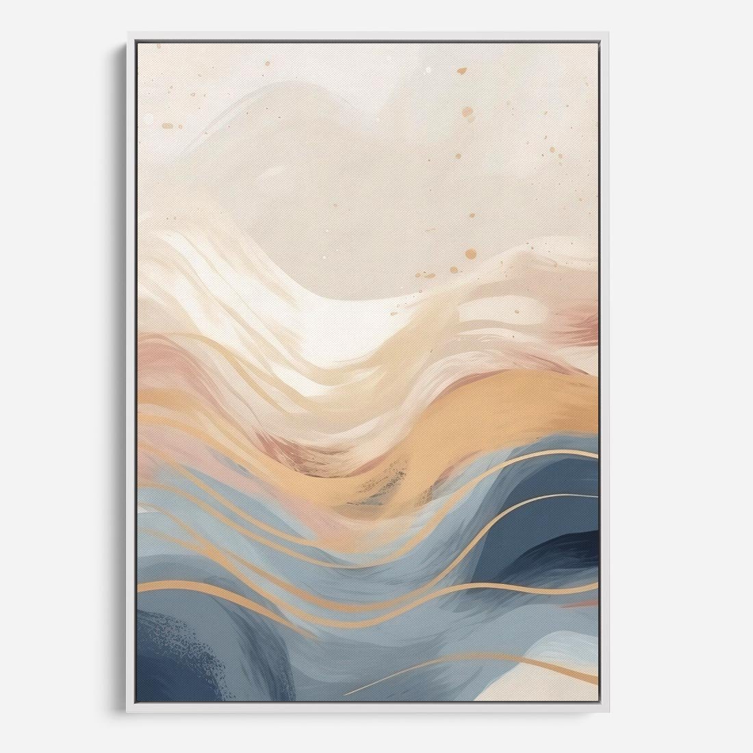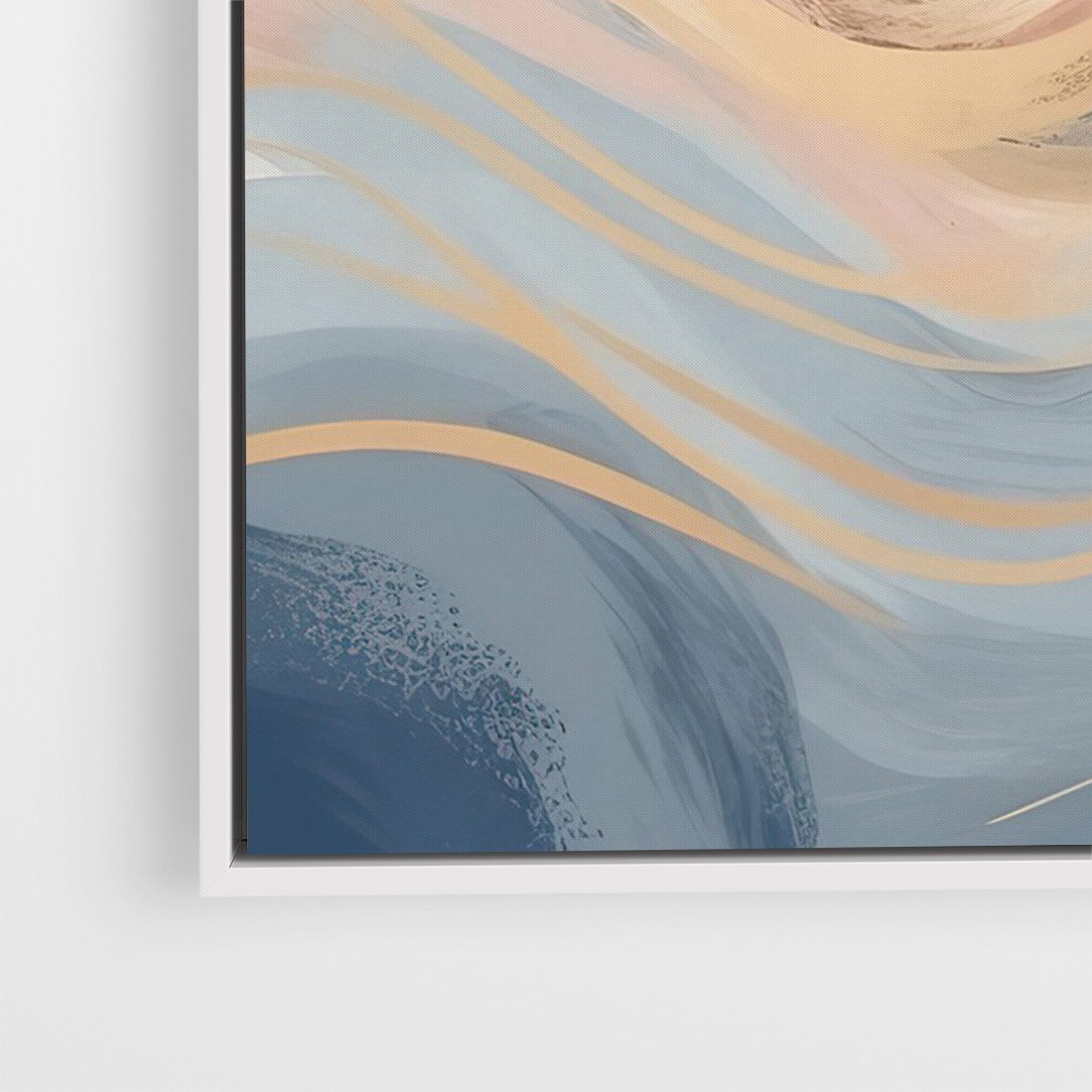 Odkryj elegancję w subtelnych abstrakcyjnych falach na płótnie. Gładkie linie tworzą klasyczne kształty, a delikatne pastelowe kolory dodają przyjemnej atmosfery, idealnej do ozdobienia Twojego domu.