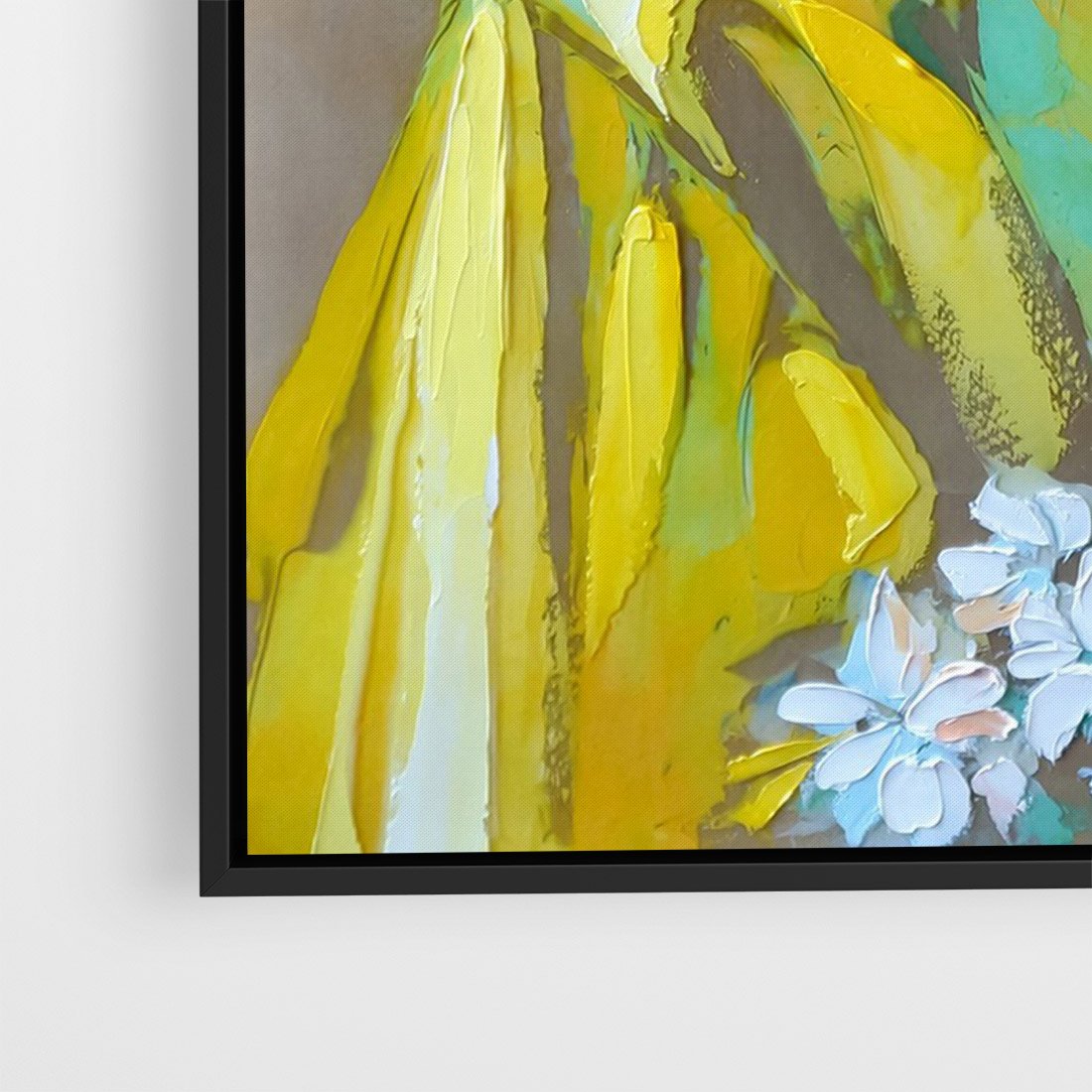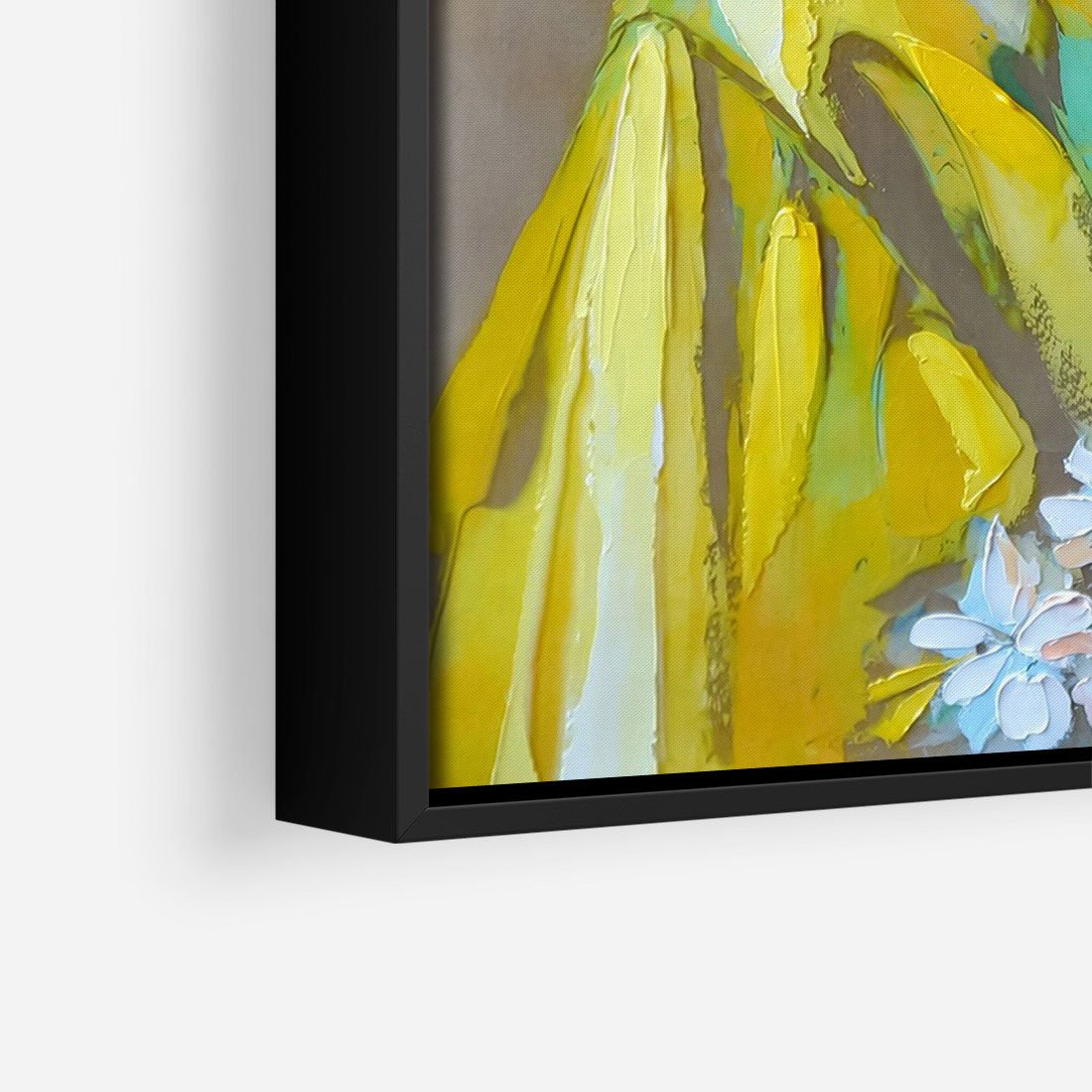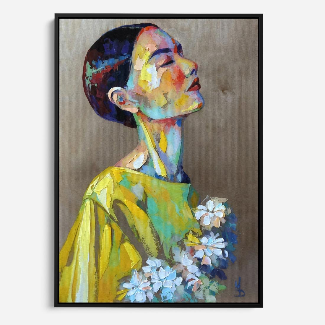 Obraz w ramie 70x100 - W Żółtej Sukience - olejny abstrakcyjny obraz, portret kobiety w żółtej sukience - rama czarna