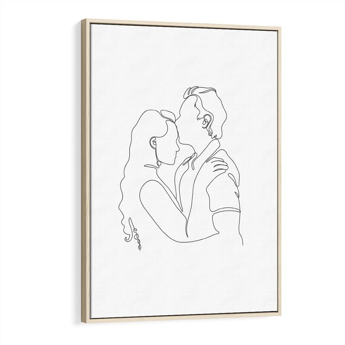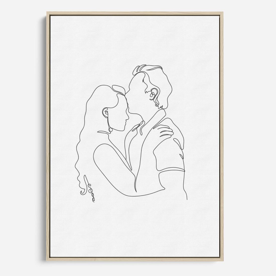 Naszkicowana jedną linią para zakochanych - kobieta i mężczyzna - symbolizuje ich połączenie i bliskość w minimalistyczny sposób.