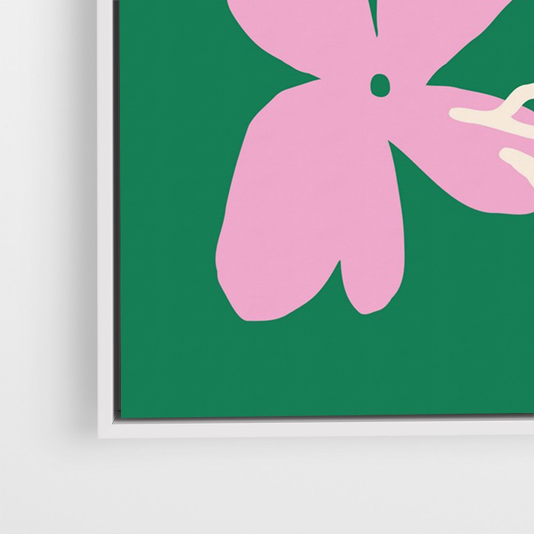 Ten abstrakcyjny plakat w boho stylu ukazuje intensywną zieleń i róż, z delikatnie wkomponowanymi kwiatowymi motywami. Idealnie pasuje do biura, dodając odrobinę natury i artystycznej energii, tworząc inspirujące otoczenie do pracy i twórczego myślenia.