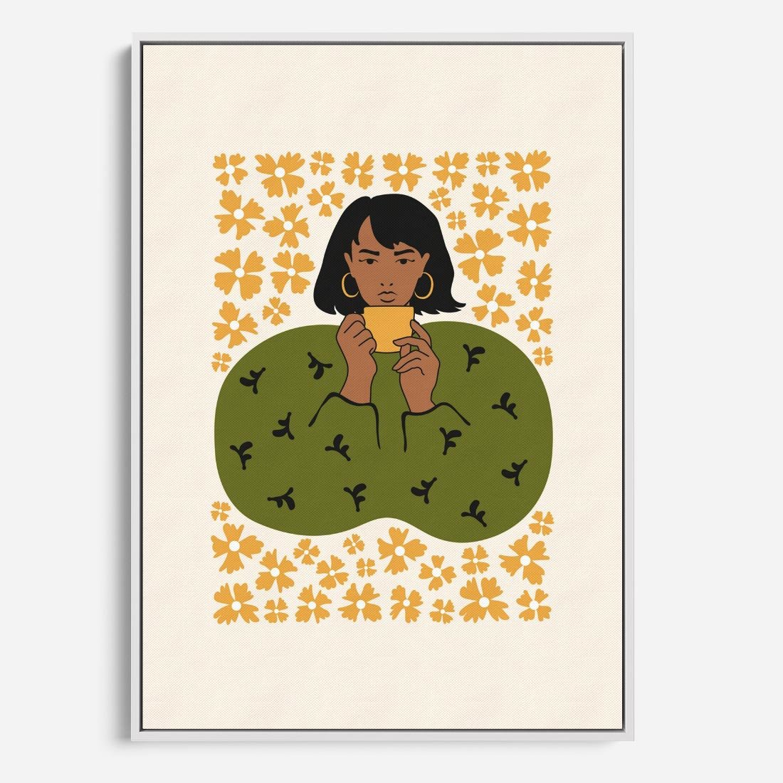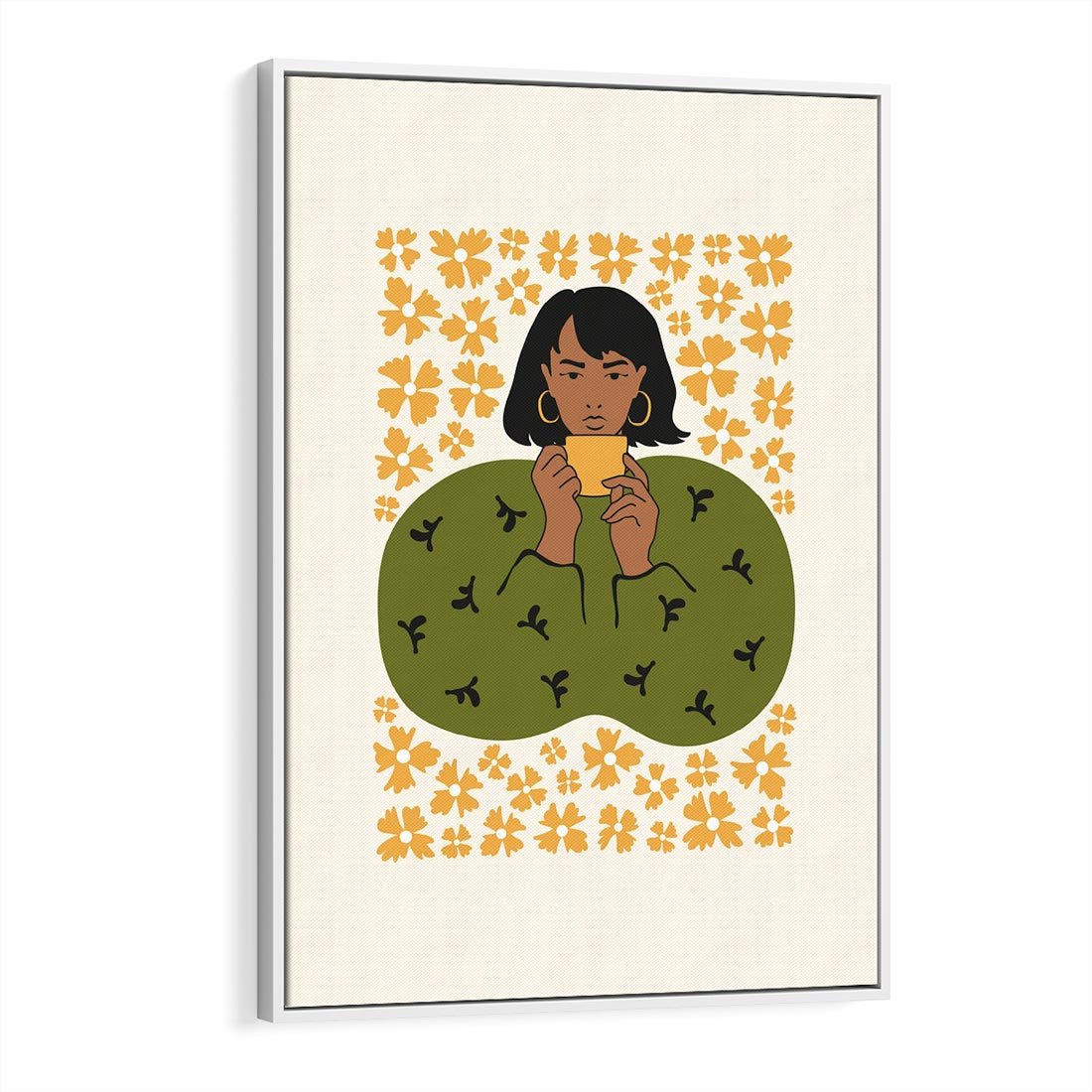 Ten nowoczesny plakat przedstawia minimalistyczną kompozycję kobiety otoczonej delikatnymi kwiatami. Sztuka ta łączy wyrazistość i prostotę, tworząc spokojny i inspirujący obraz, który zaprasza do refleksji i cieszenia się pięknem natury w harmonii z nowoczesnym stylem.
