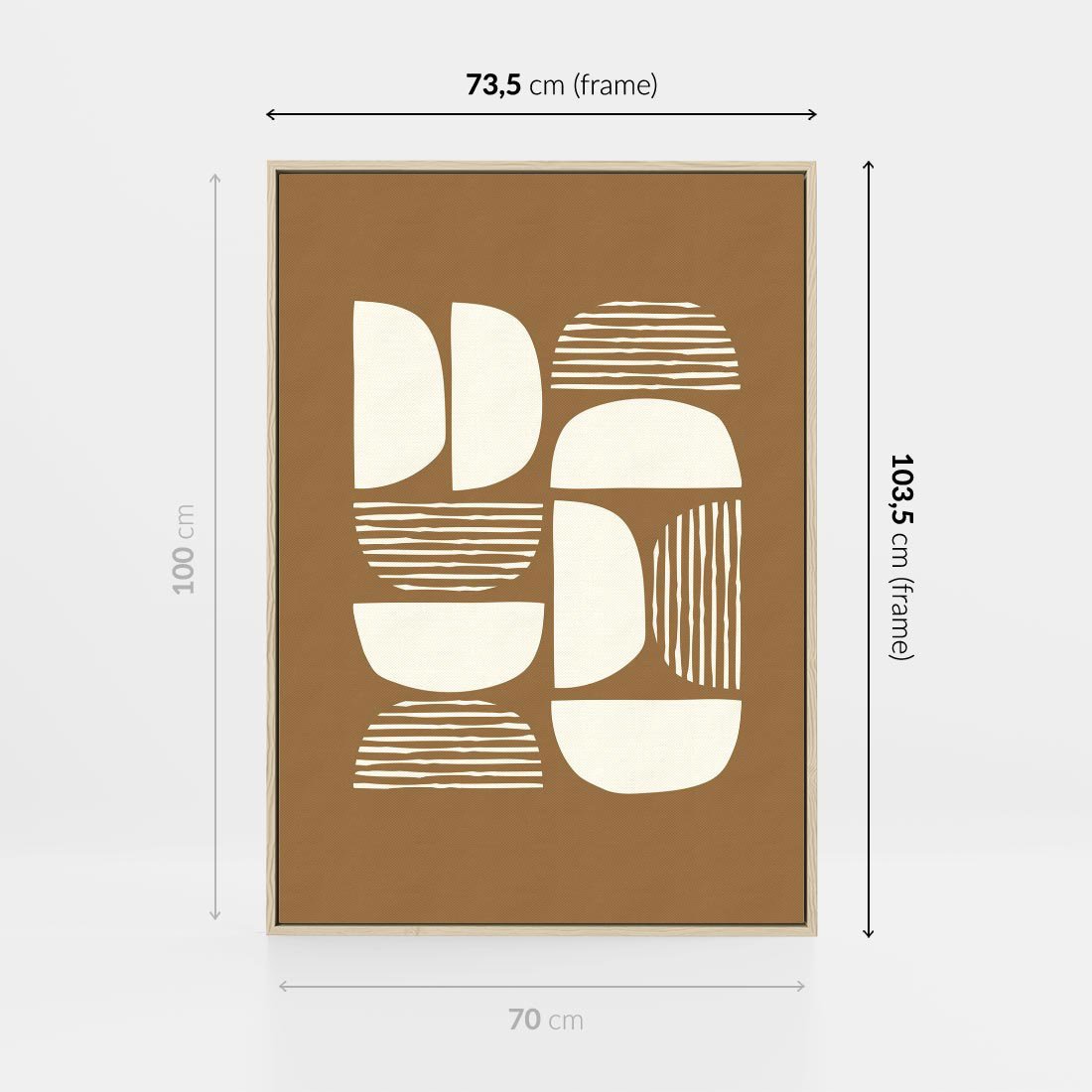 Obraz w ramie 70x100 - Wewnętrzne Spektrum - geometryczne boho kształty na brązowym, karmelowym tle - rama drewno