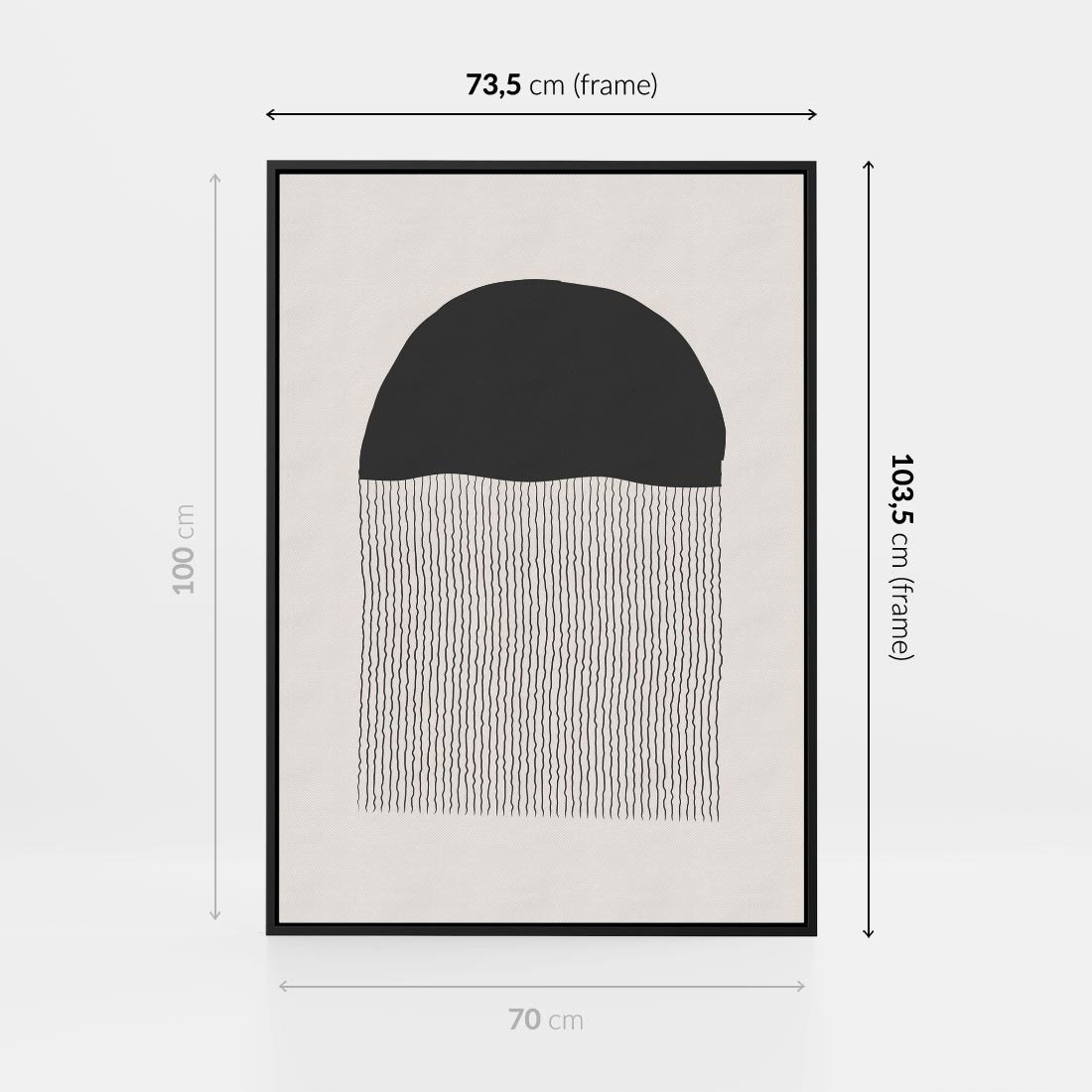 To wyjątkowe dzieło sztuki prezentuje abstrakcyjną kompozycję opartą na półkolach i falistych liniach. W stonowanych odcieniach czerni i beżu, tworzy minimalistyczną estetykę o spokojnym, ale jednocześnie energicznym wyrazie. Półkola i linie wzajemnie przenikają się, tworząc wrażenie opuszczenia i dynamiczności. Ta kompozycja zachęca do refleksji nad kontrastami i proporcjami, wnosząc jednocześnie harmonię i spójność do przestrzeni.