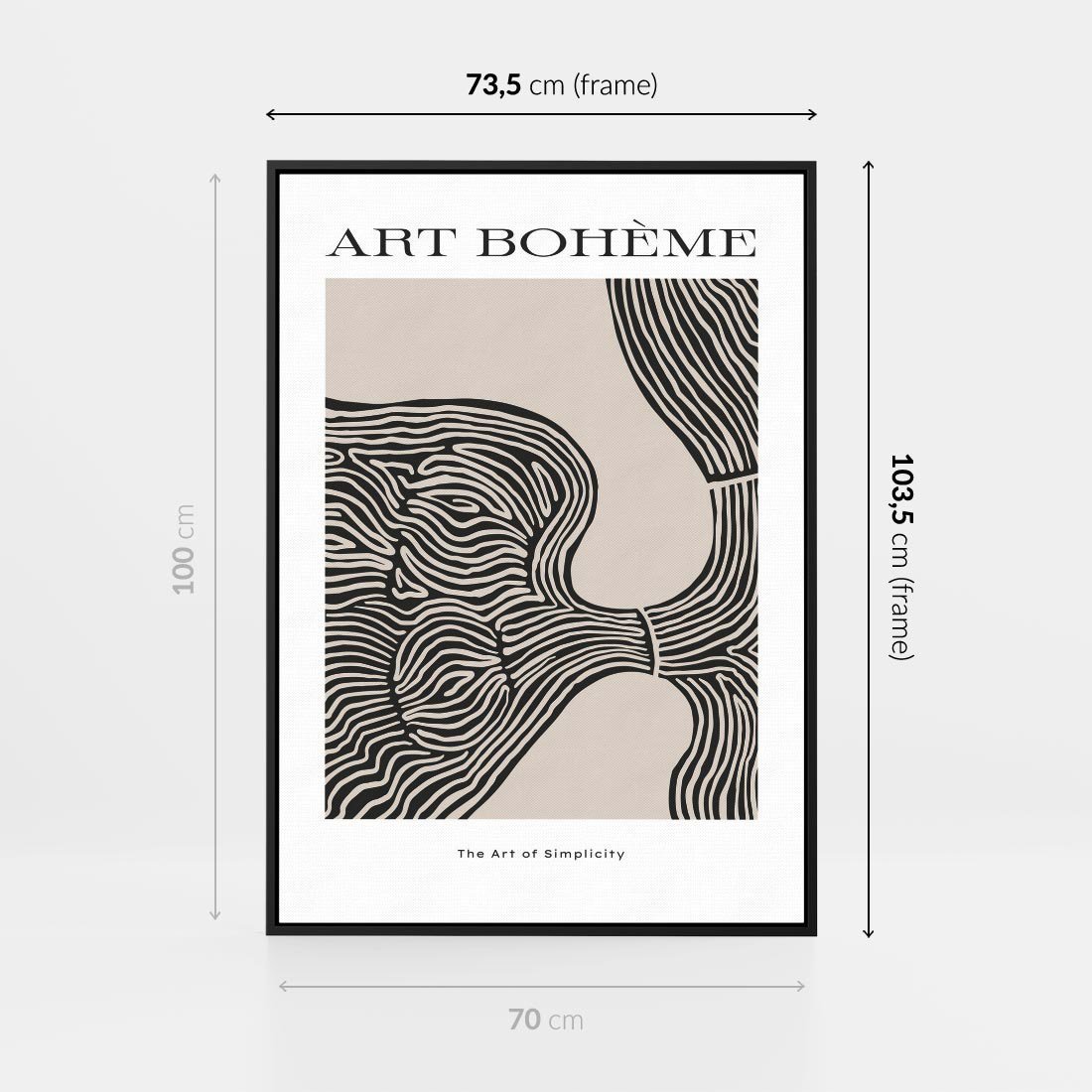 To sztuka minimalizmu łącząca białą i czarną rycinę w abstrakcyjnym stylu. Wprowadza ona subtelny akcent boho, ukazując harmonię i prostotę w formie artystycznej. To dzieło inspiruje do refleksji, tworząc jednocześnie przestrzeń do interpretacji i odkrywania własnych znaczeń.