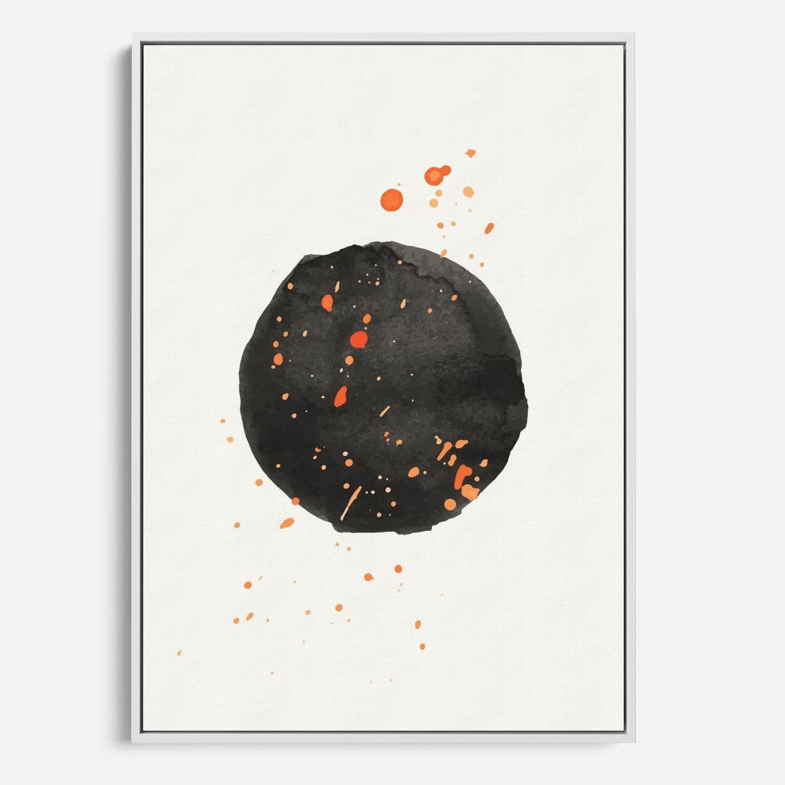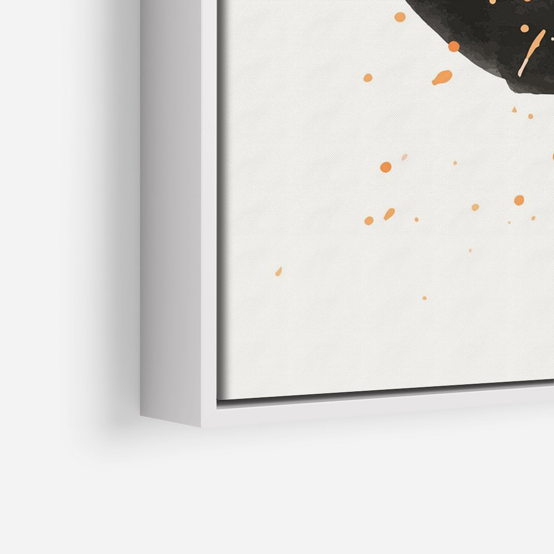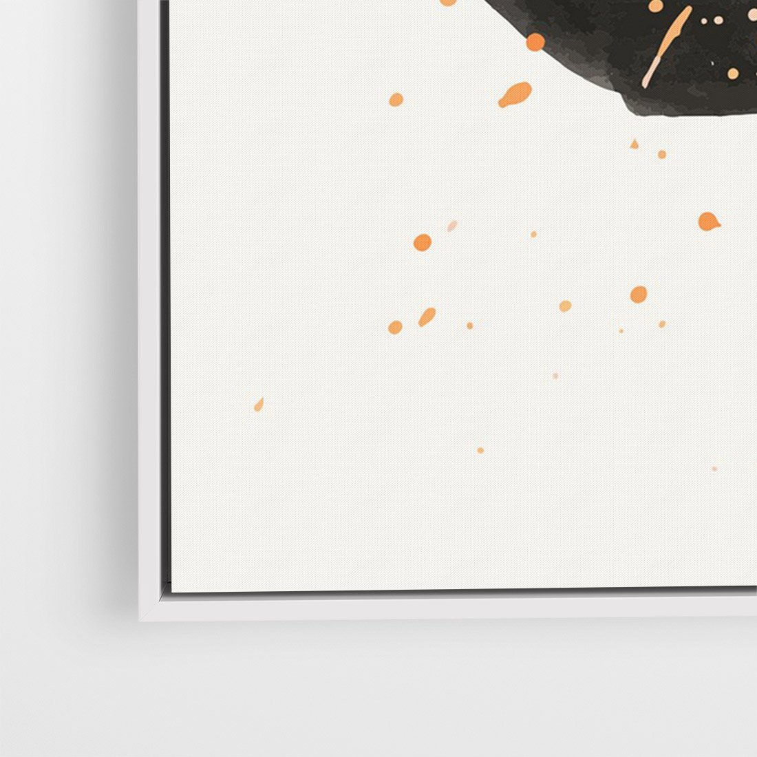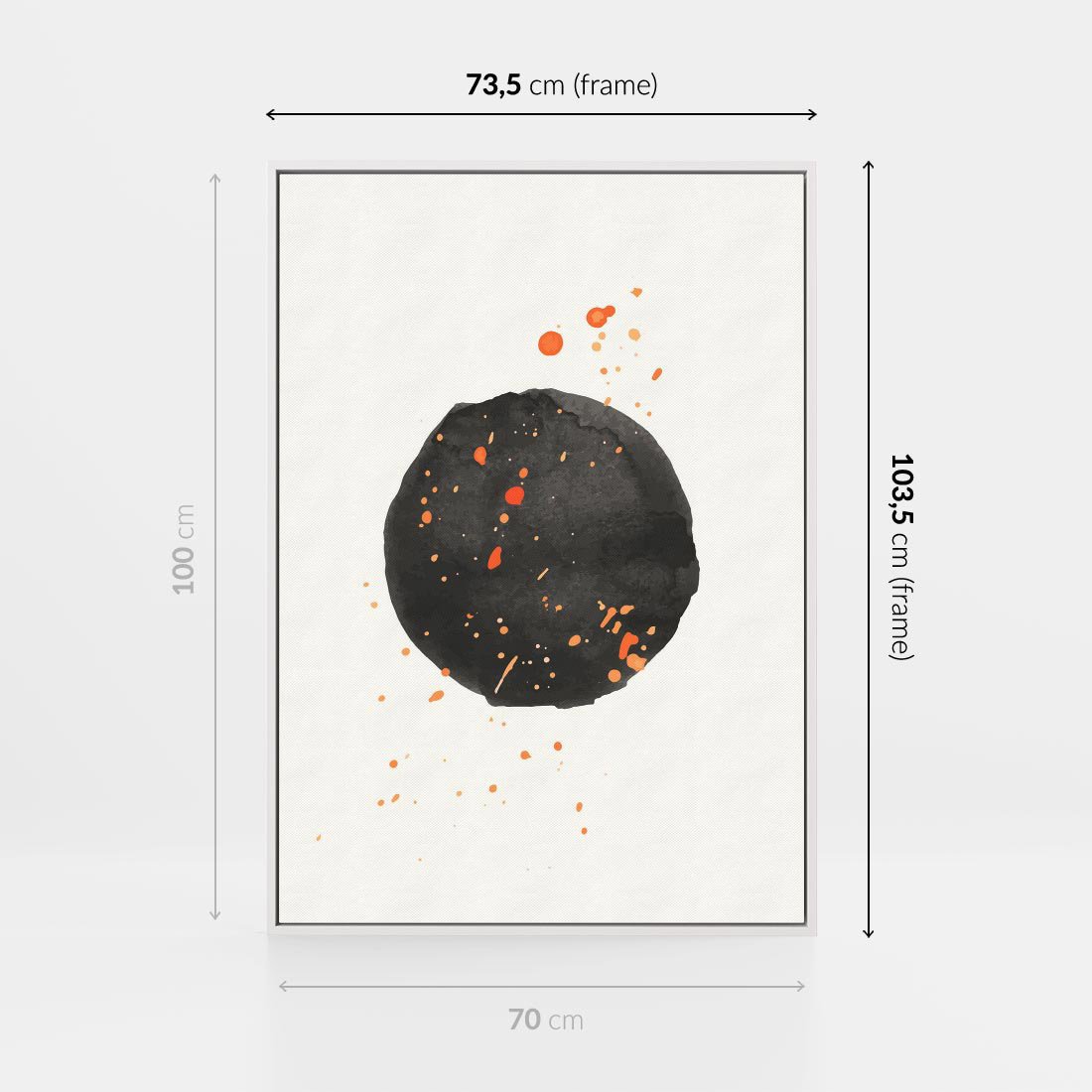 Obraz w ramie 70x100 - Wibracje Kolorów - abstrakcyjna czarna plama, rozsiane pomarańczowe kropki - rama biała