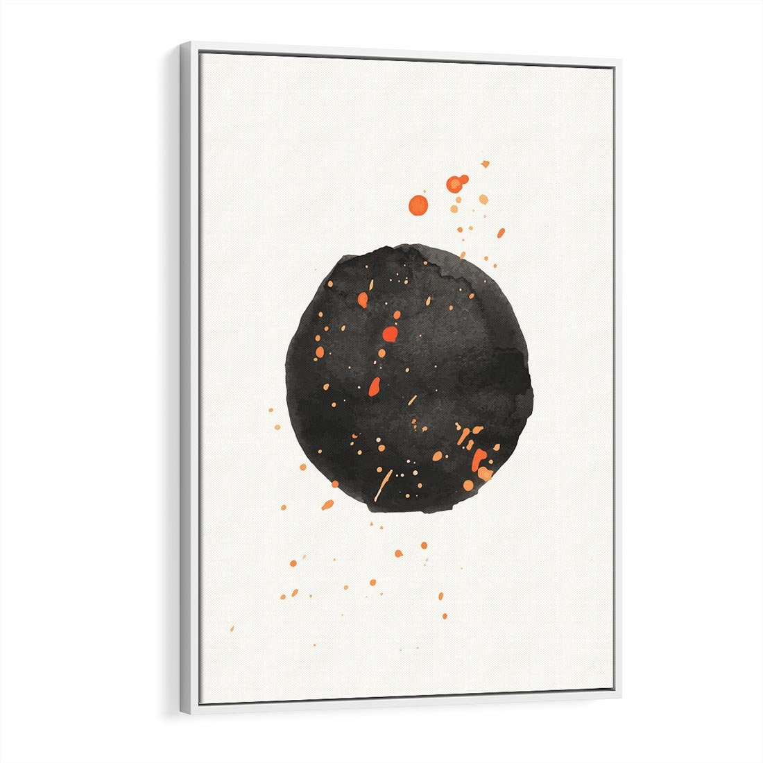 Oryginalny obraz to połączenie abstrakcyjnej czarnej plamy z delikatnie rozsianymi pomarańczowymi kropkami. Minimalistyczny styl i mocny akcent tworzą wyjątkową nowoczesną sztukę.