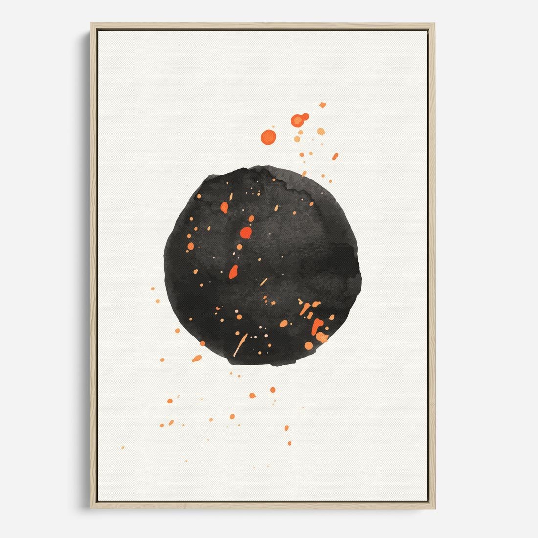 Oryginalny obraz to połączenie abstrakcyjnej czarnej plamy z delikatnie rozsianymi pomarańczowymi kropkami. Minimalistyczny styl i mocny akcent tworzą wyjątkową nowoczesną sztukę.