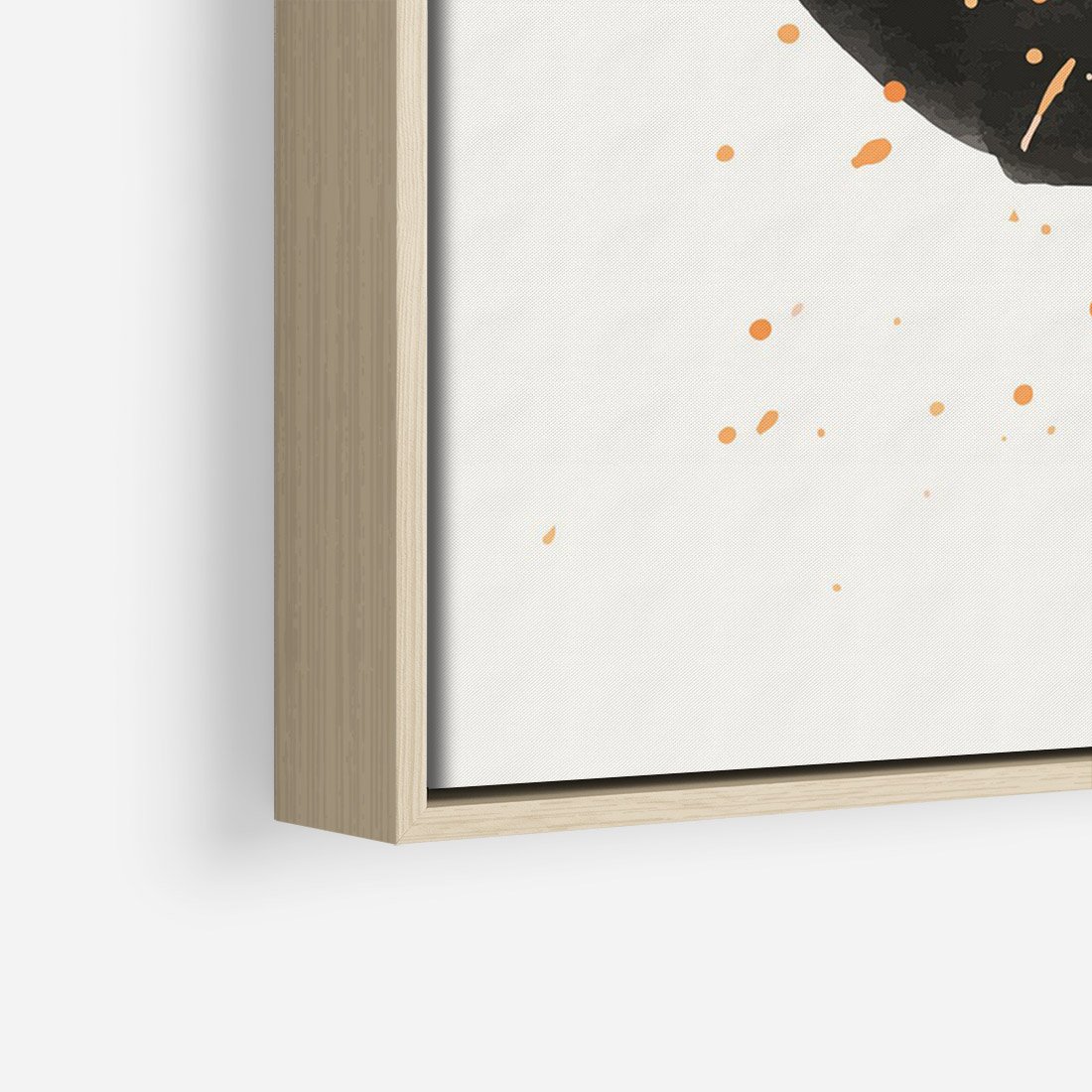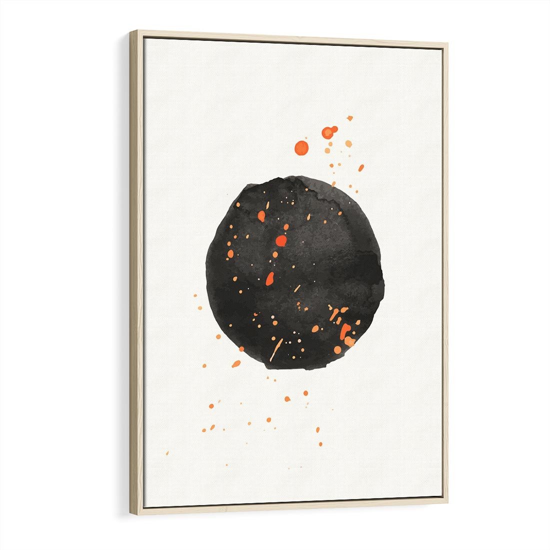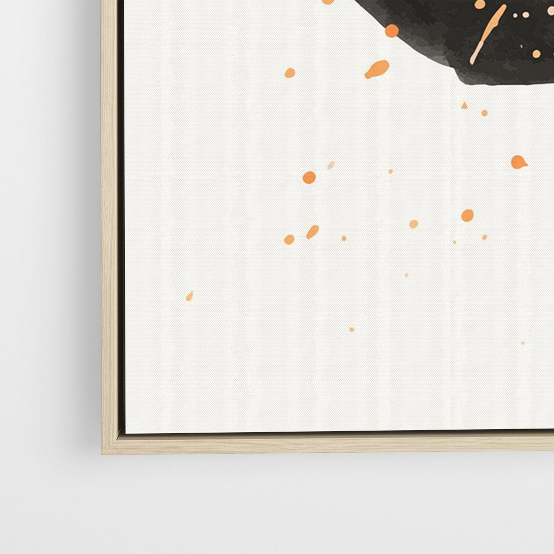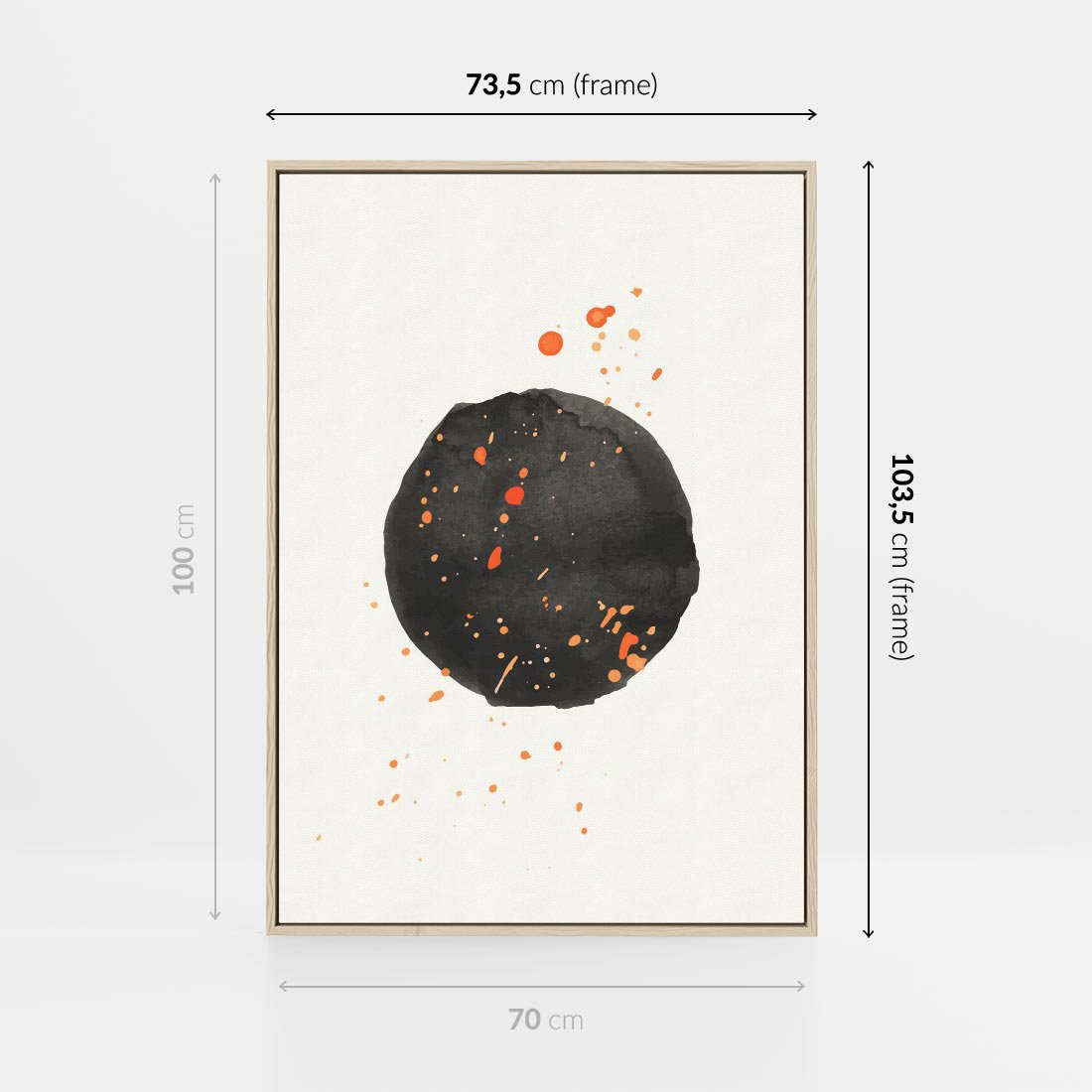Obraz w ramie 70x100 - Wibracje Kolorów - abstrakcyjna czarna plama, rozsiane pomarańczowe kropki - rama drewno