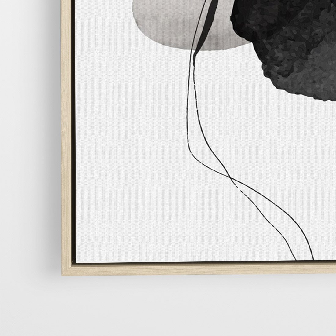 Obraz w ramie 70x100 - Wibracje Kształtów - abstrakcyjne plamy akwarelowe, czarny szkic - rama drewno
