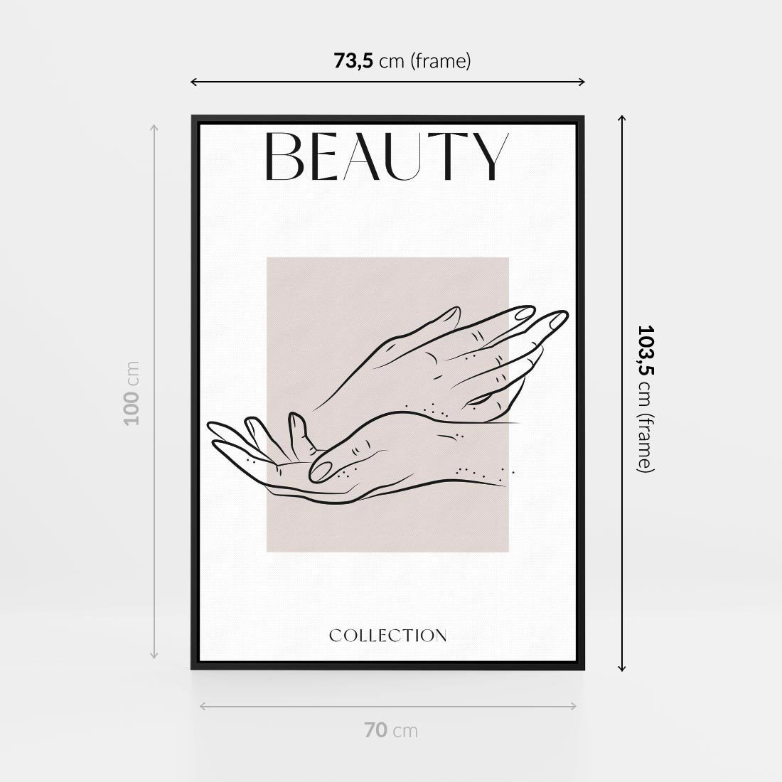 Ten boho plakat z delikatnie ułożonymi dłońmi i wyrazistą typografią beauty emanuje spokojem i elegancją. W minimalistycznym stylu oddaje piękno w najprostszej formie. Beżowe tło dodaje ciepła i harmonii, tworząc przestrzeń, która podkreśla naturalne piękno i równowagę.