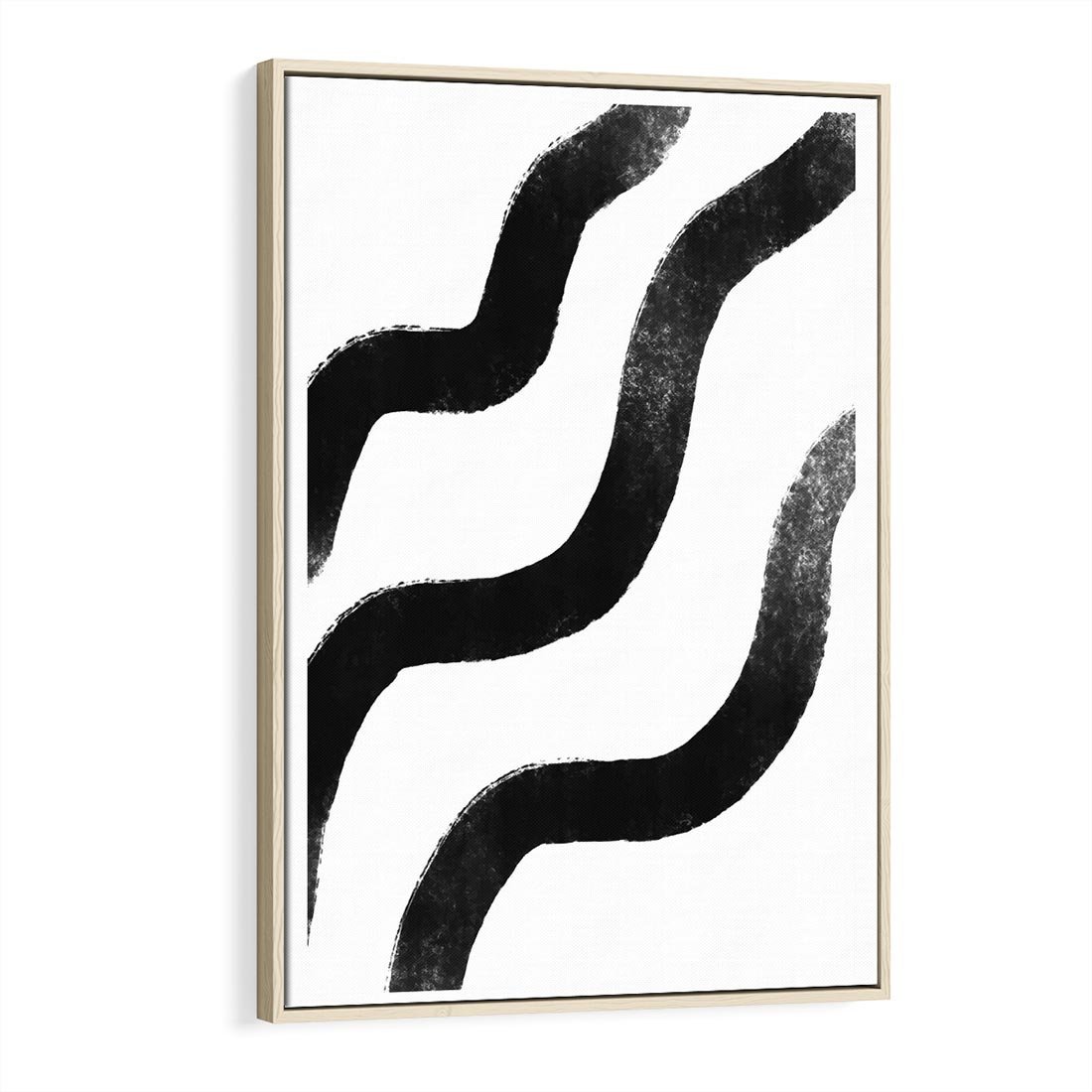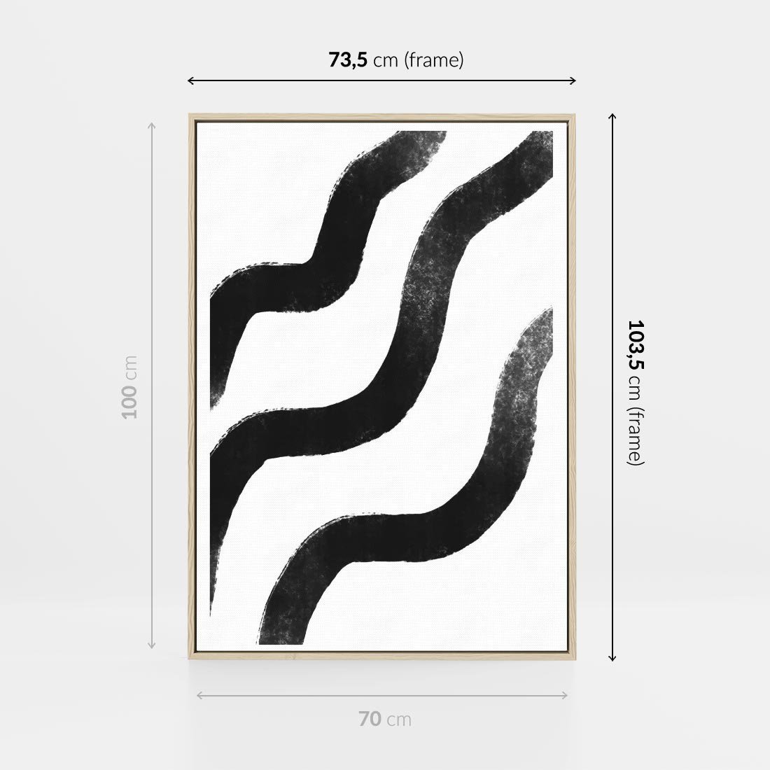 Ten minimalistyczny obraz abstrakcyjny w stylu modern art charakteryzuje się czarnymi falującymi liniami, które tworzą dynamiczną i wyrazistą kompozycję. To dzieło sztuki doskonale oddaje ducha nowoczesności i minimalizmu, nadając się idealnie do współczesnych wnętrz.