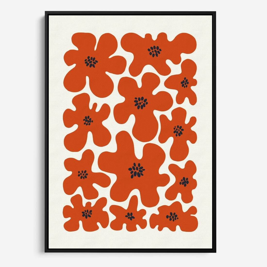 Ten nowoczesny plakat przedstawia abstrakcyjne czerwone kwiaty w unikalnej kompozycji. Sztuka ta bawi się formą i kolorem, tworząc dynamiczną wizję natury w nowoczesnym wydaniu.