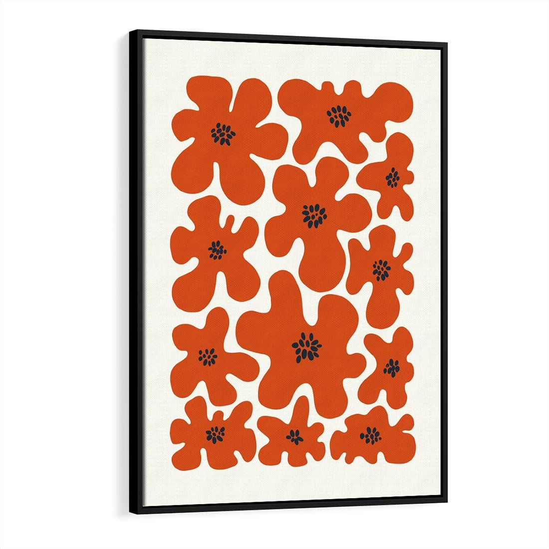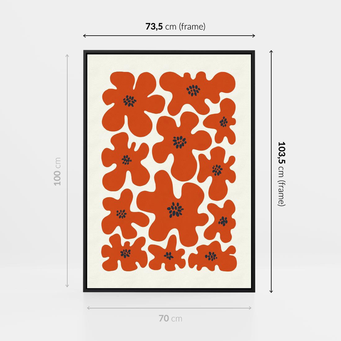 Obraz w ramie 70x100 - Wibracje Przestrzeni - abstrakcyjne czerwone kwiaty, kompozycja - rama czarna