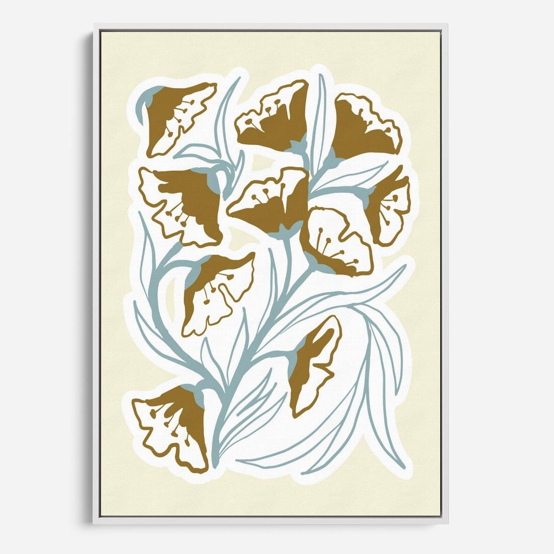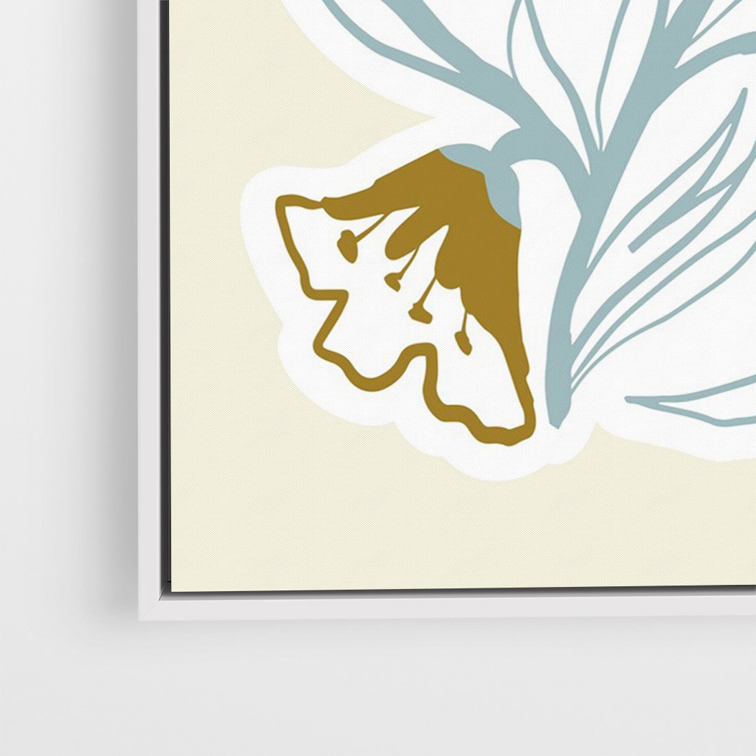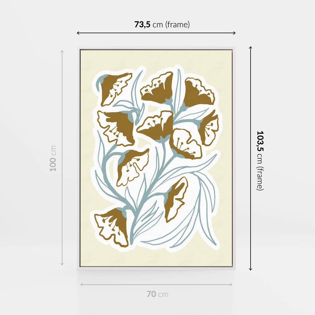 Obraz w ramie 70x100 - Wibracje Widzenia - abstrakcyjne beżowe kwiaty, elegancka kompozycja - rama biała