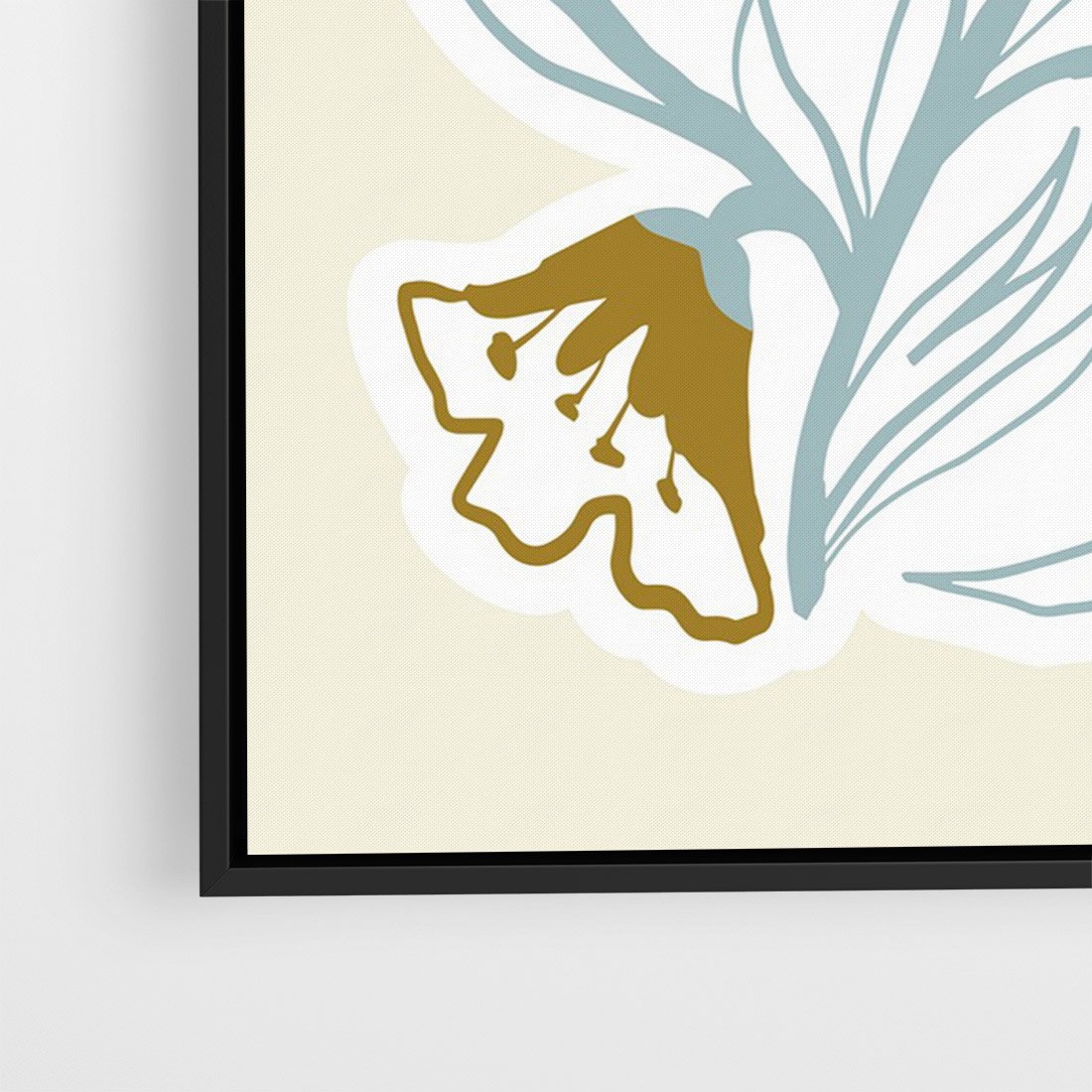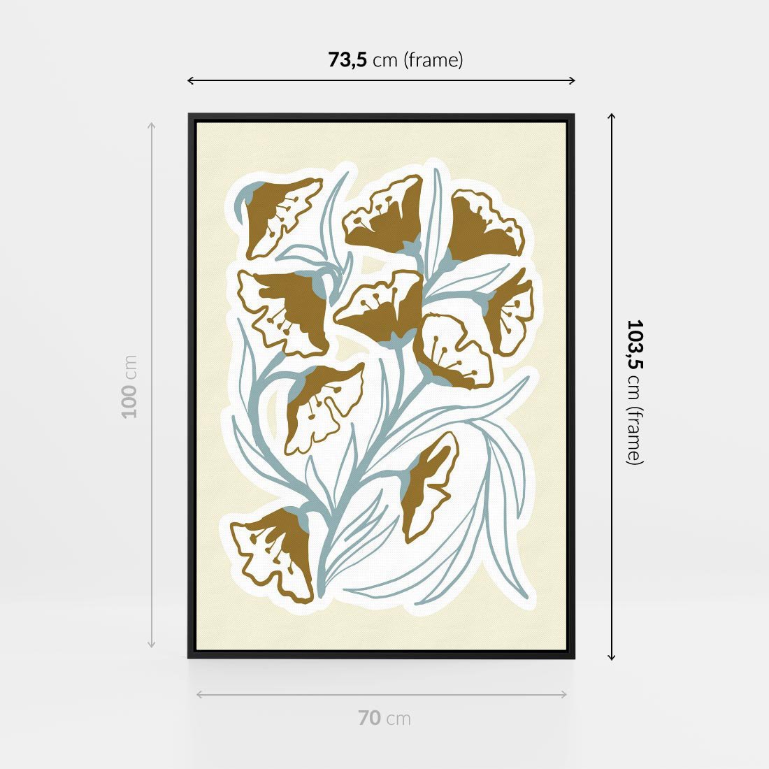 Obraz w ramie 70x100 - Wibracje Widzenia - abstrakcyjne beżowe kwiaty, elegancka kompozycja - rama czarna