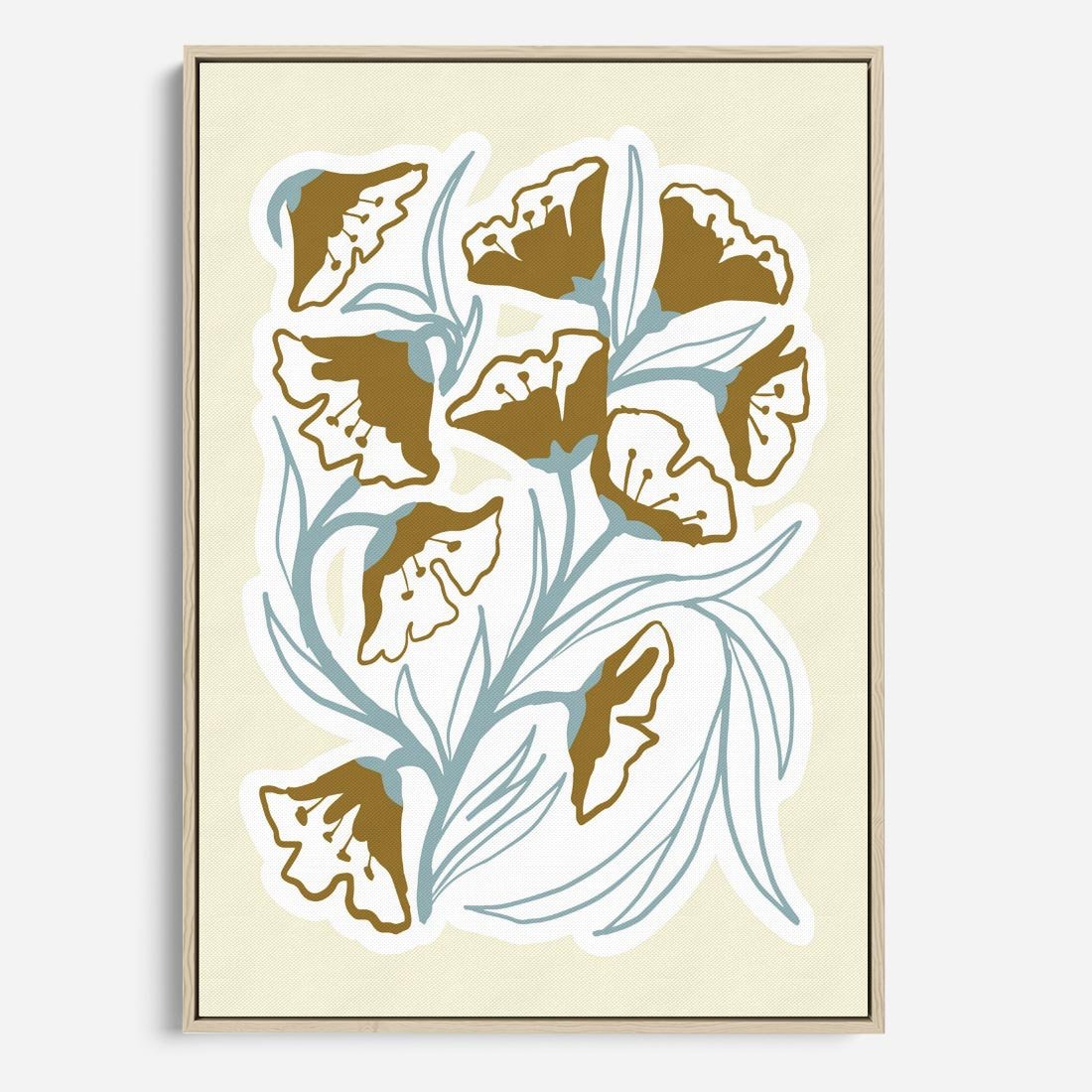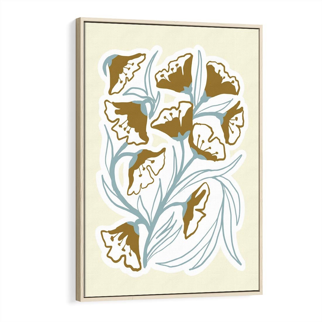 Obraz w ramie 70x100 - Wibracje Widzenia - abstrakcyjne beżowe kwiaty, elegancka kompozycja - rama drewno